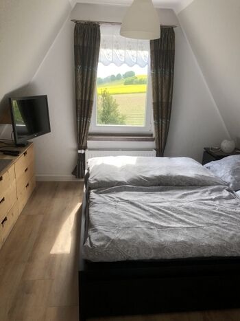 Doppelbett 1,80 x 2,00m, Kommode, Leselampe am Bett
