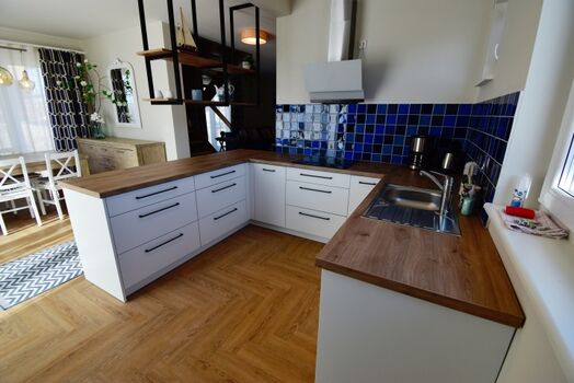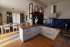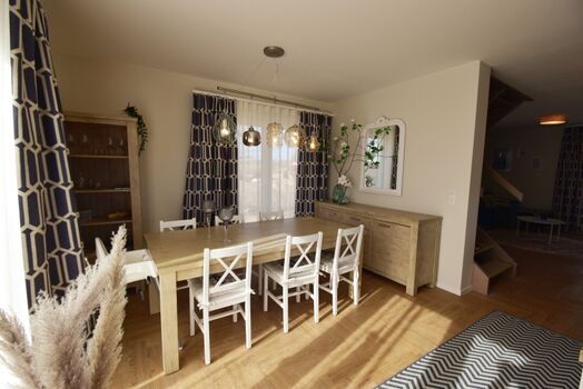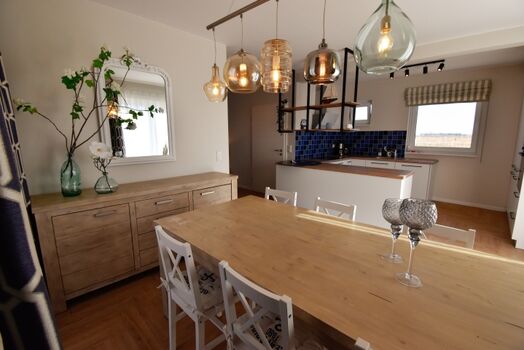 Haus Anni bietet Ihnen ein gemütliches Domizil auf 2 Ebenen und großzügigen Platz für 4 Personen. Im Erdgeschoss befindet sich der offen gestaltete Wohn-und Essbereich. Die bodentiefen Fenster lassen viel Licht ins Haus und geben den Blick auf das schöne Grundstück frei. Ob gemütliche Fernsehabende oder die gemeinsamen Mahlzeiten - genießen Sie Familienzeit in der gemütlichen Atmosphäre. Die große, voll ausgestattete Küche bietet alles, um Ihre Lieben auch im Urlaub mit leckeren Mahlzeiten zu verwöhnen.