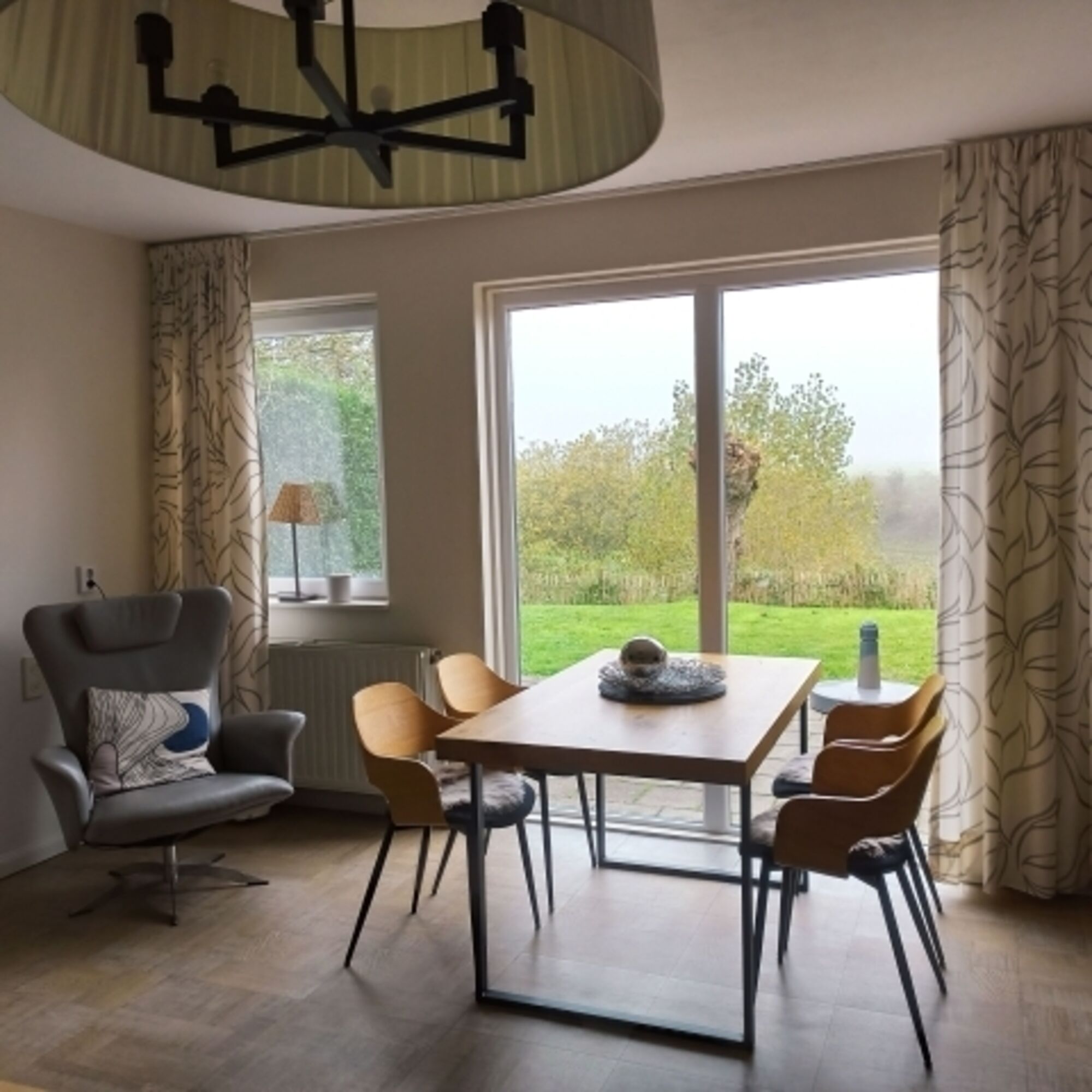 Der Garten ist eingezäunt bzw. durch eine Hecke natürlich eingefriedet. Nach einer Fahrradtour können Sie Ihre Fahrräder in der Garage abstellen, Ihren Hund können Sie nach einem ausgiebigen Strandspaziergang mit dem Gartenschlauch im Garten „entsanden“.