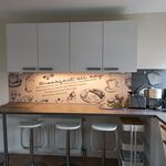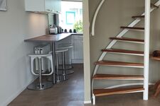 Gasofen / Gasherd, Dunstabzugshaube, Gefrierschrank, Senseo-Kaffeeautomat, Eierkocher, Korkenzieher / Flaschenöffner, Gewürze (Salz, Pfeffer, Zucker), Essplatz in der Küche