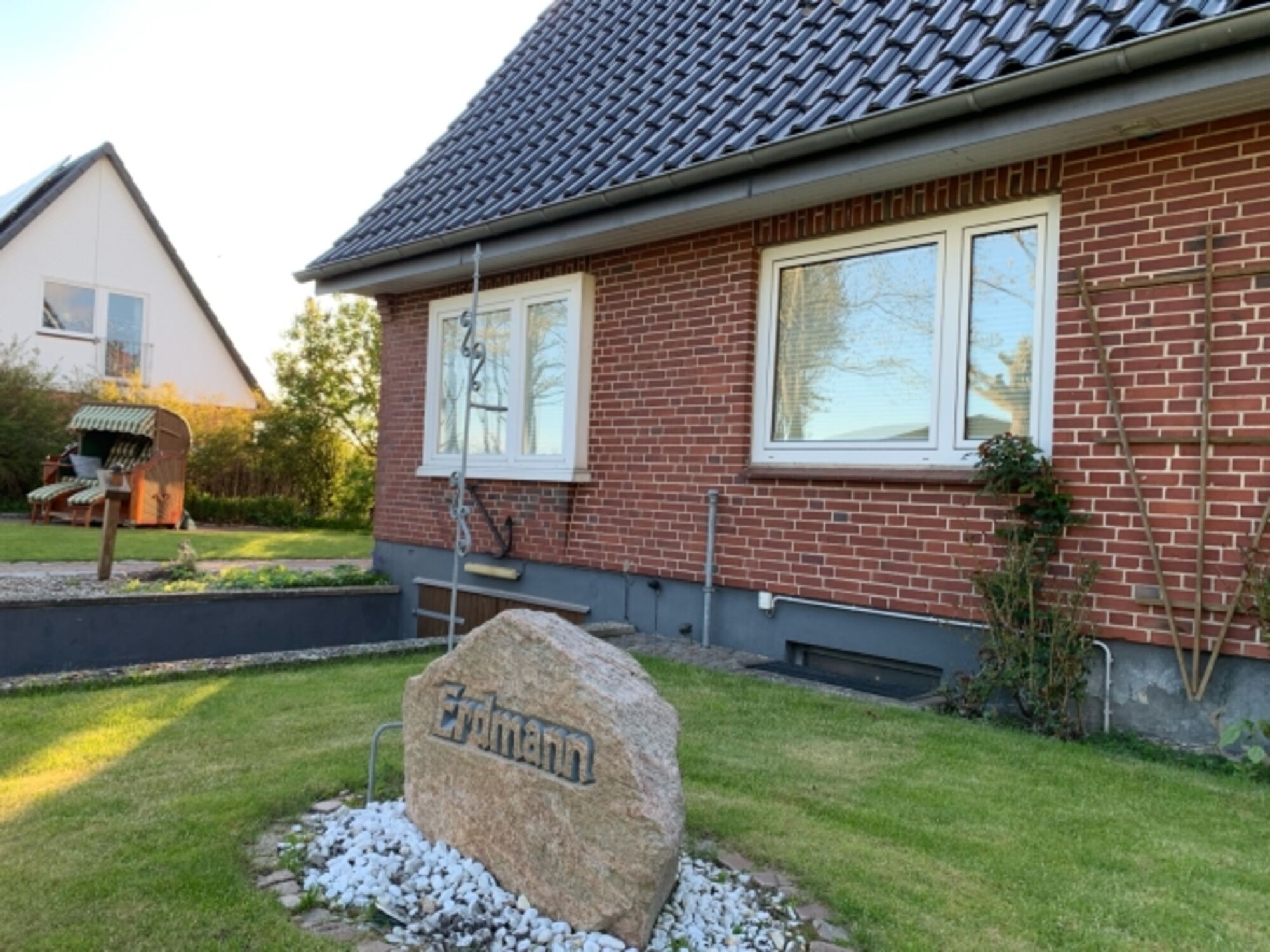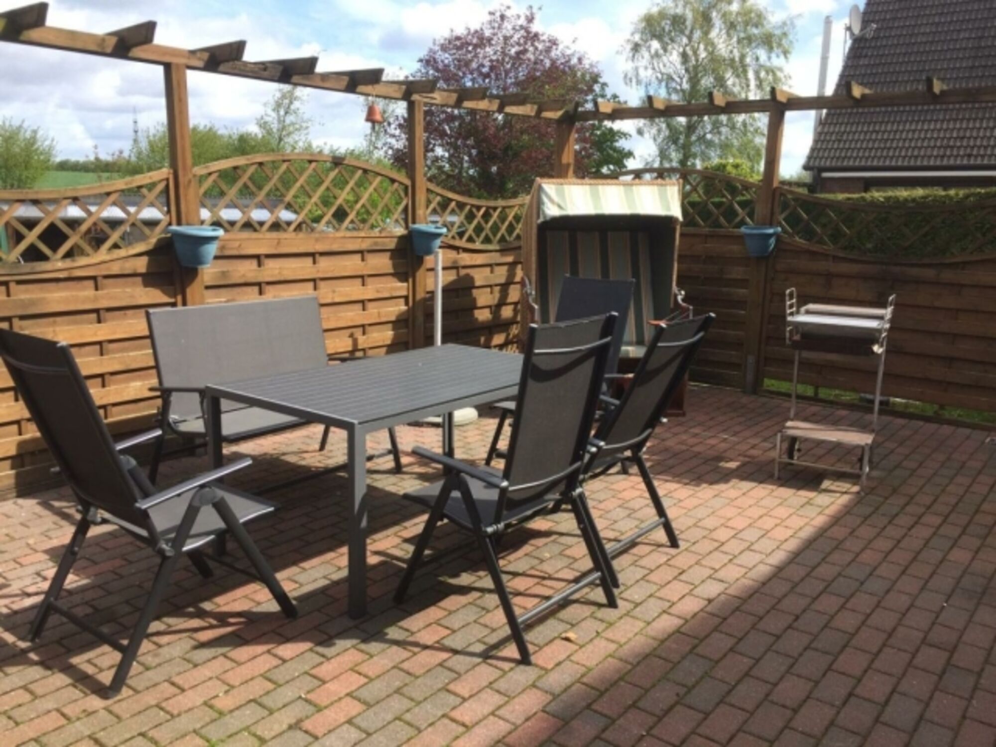 Liegewiese, Strandkorb, Gartenmöbel, Kohlegrill, Windschutz