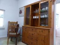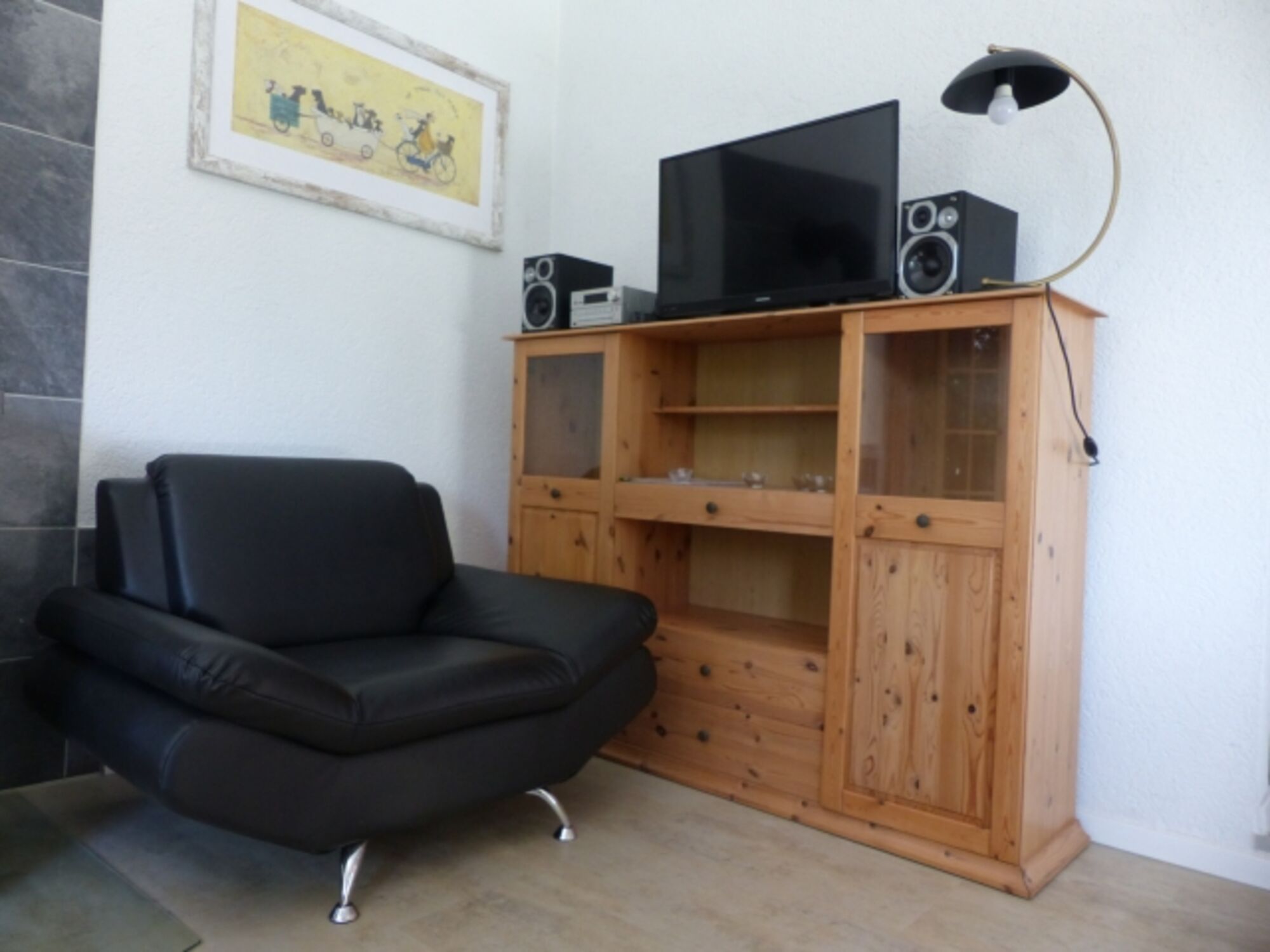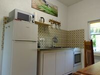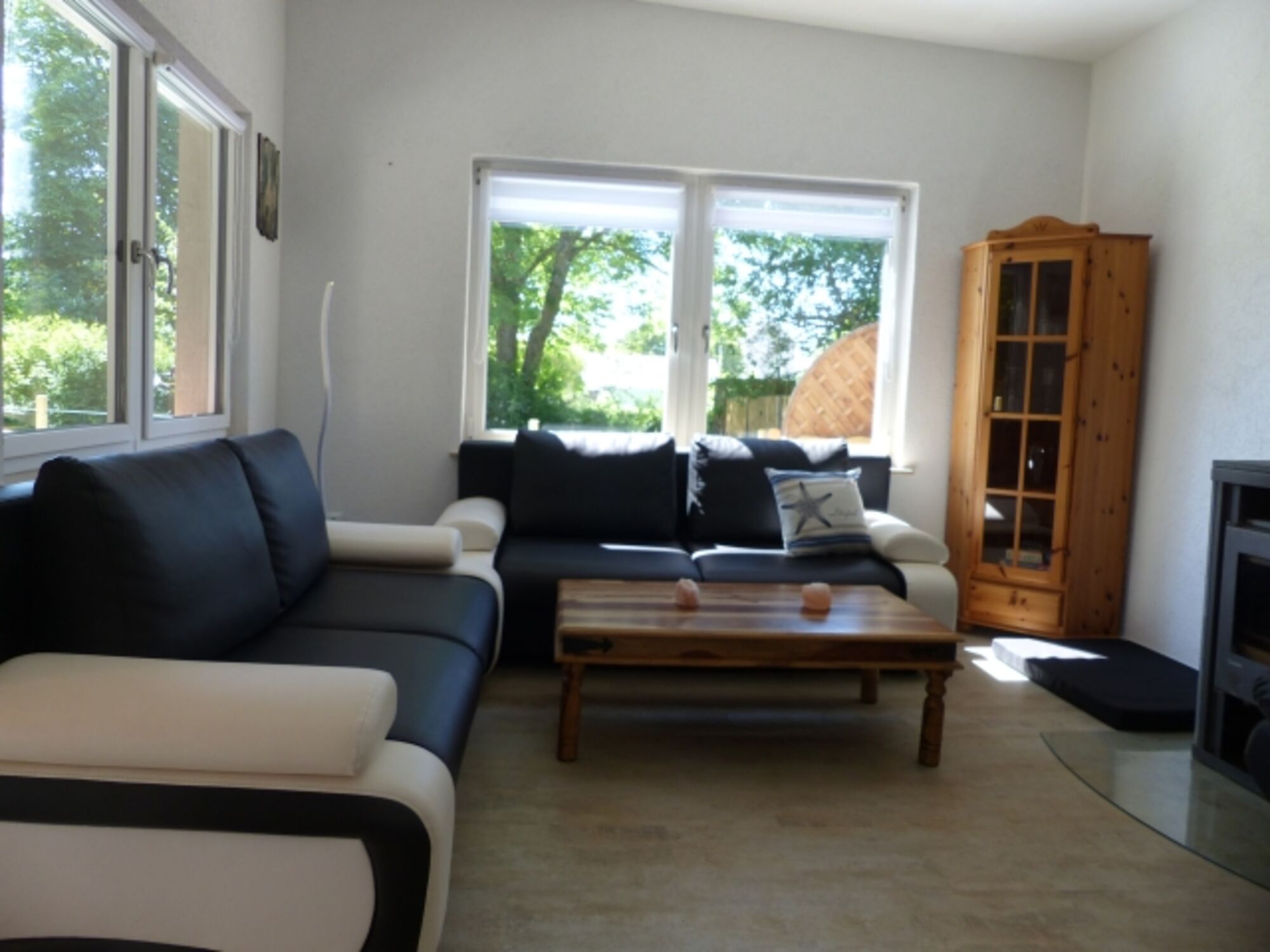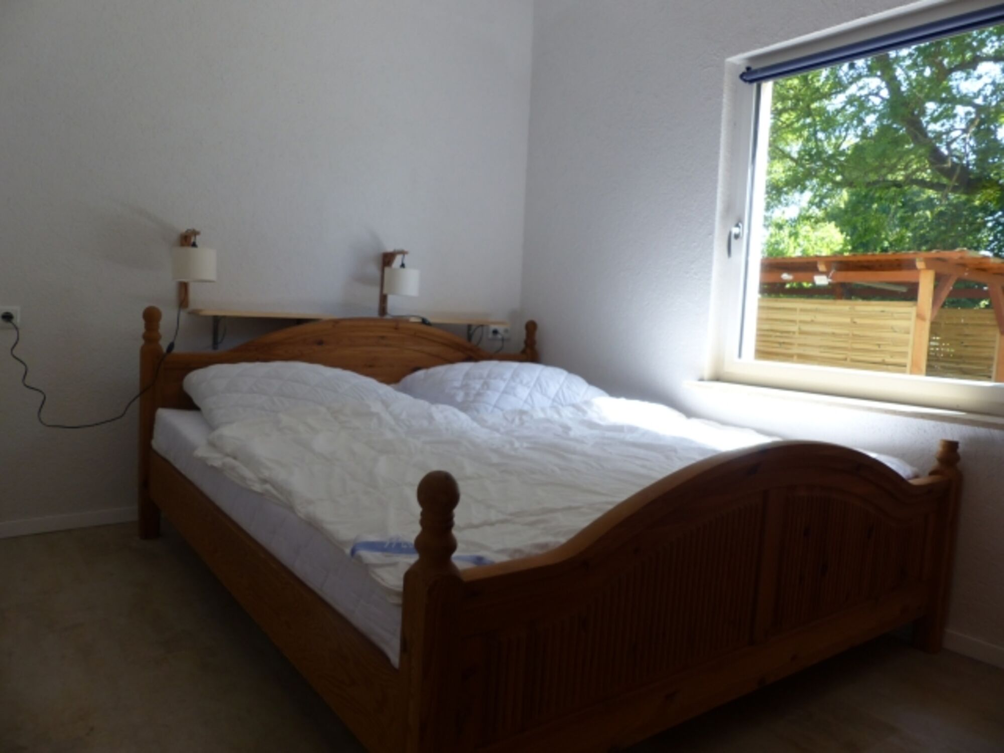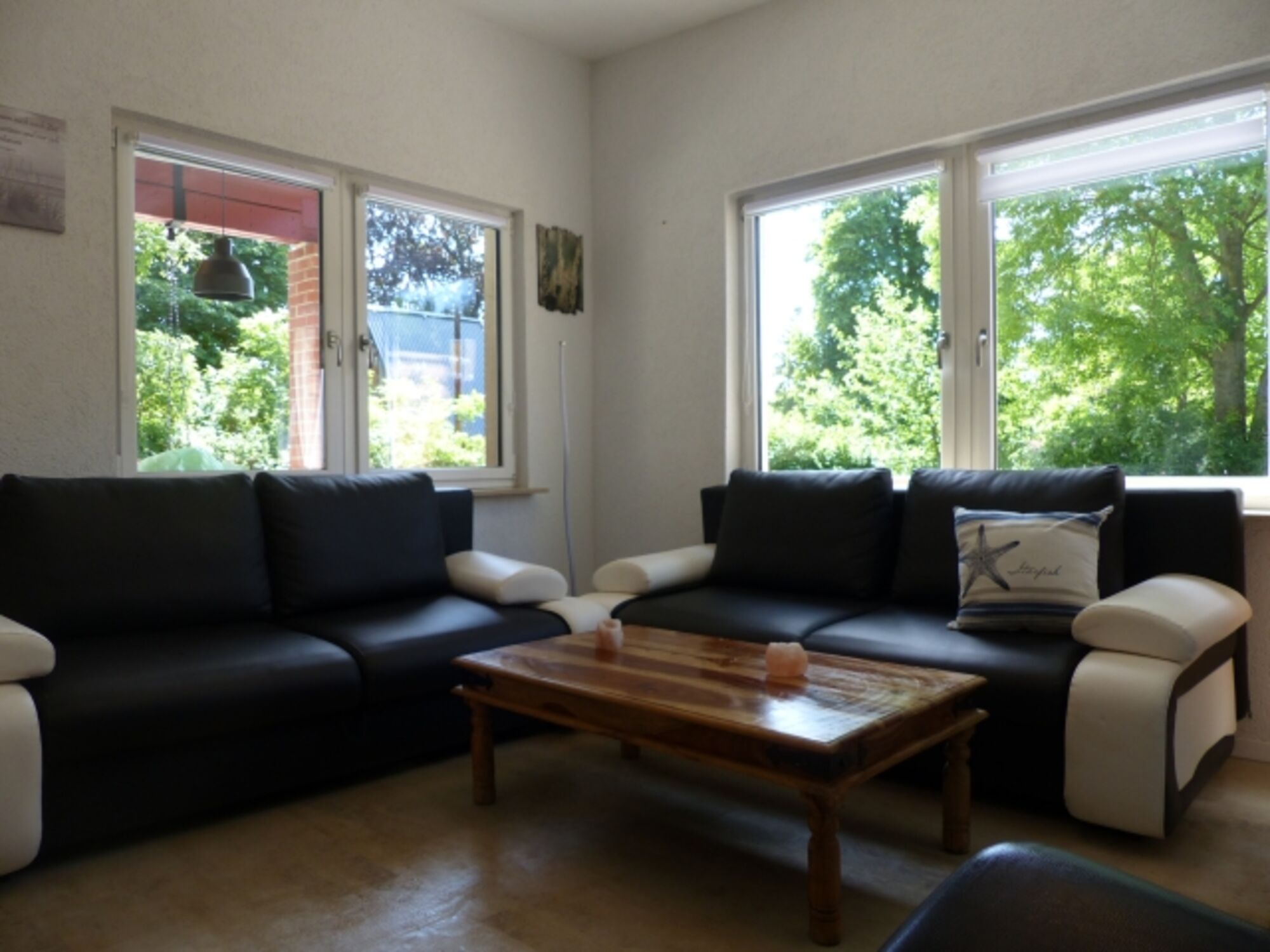 Das Wohnzimmer bietet Ihnen eine gemütliche Fernsehecke, Stereoanlage, Kaminofen, zwei Ledersofas (ein Schlafsofa) und direktem Ausgang zum eingezäunten eigenen Garten. Im Schlafzimmer finden Sie ein Doppelbett, Lampen am Bett, Kleiderschrank und Kommode. Das Fenster verfügt über ein Fliegenschutzgitter. Das Bad ist gefliest, hat eine großzügige barrierefreie Dusche und Tageslicht (ebenfalls mit Fliegenschutz versehen). Die Küche haben wir komplett ausgestattet, damit Sie sich auch selbst Ihr Lieblingsessen kochen können. Es sind Herd mit Backofen, eine Mikrowelle, Kaffeemaschine, Eierkocher, Wasserkocher und eine Kühl-Gefrier-Kombination, etc. vorhanden.