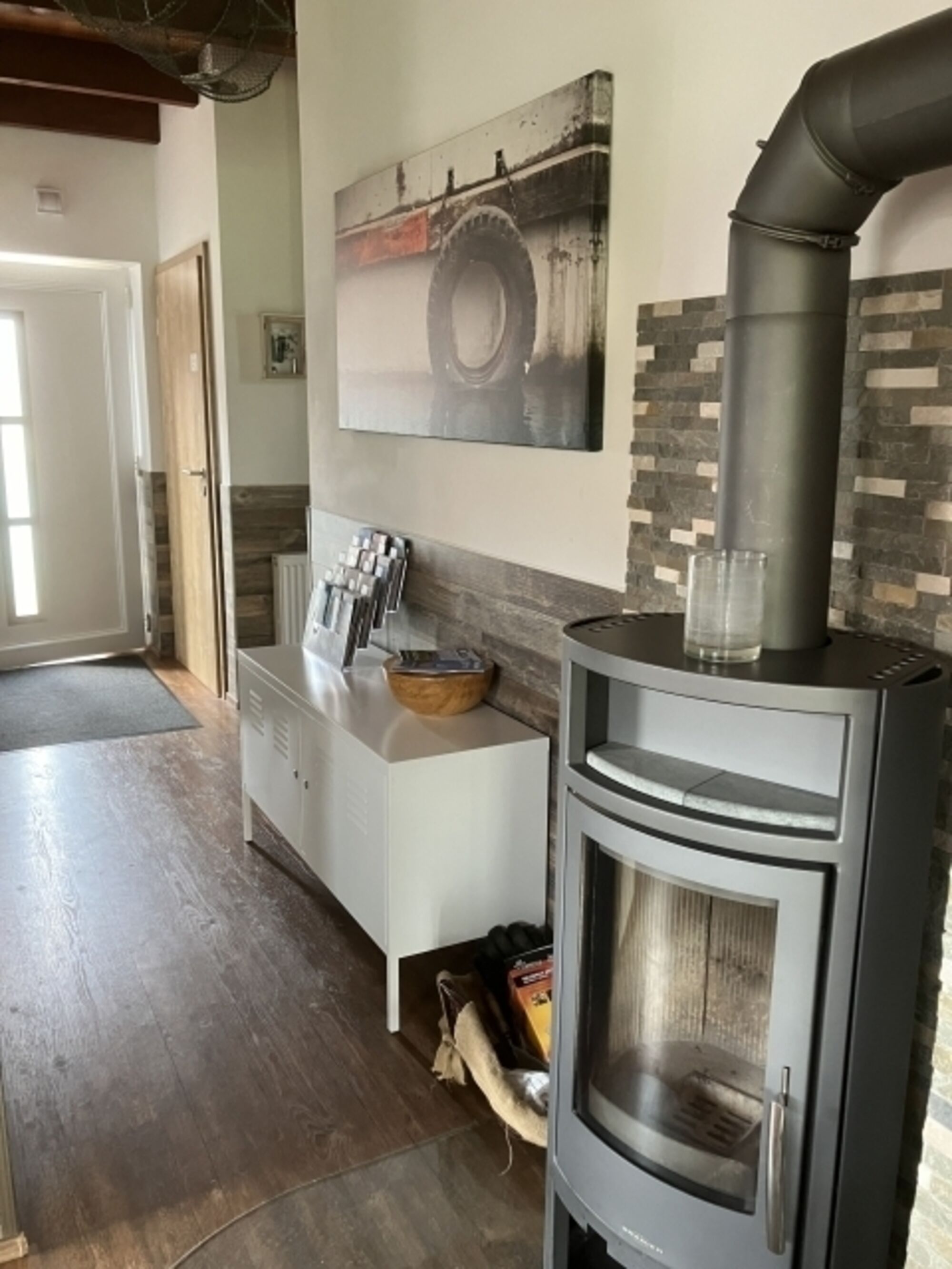 Im Inneren des Ferienhauses erwartet Sie eine hochwertige Ausstattung. Die eingeschossige Anordnung umfasst zwei moderne Duschbäder mit bodengleichen Duschen, was nahezu barrierefreien Komfort gewährleistet. Der offene Koch- und Wohnbereich mit seinem gemütlichen Ofen macht das Zusammensein besonders angenehm. Praktisch ist auch der separate Abstellraum mit Waschmaschine und Eisschrank sowie die mit Rollläden ausgestatteten Schlafzimmer, die für eine angenehme Nachtruhe sorgen.