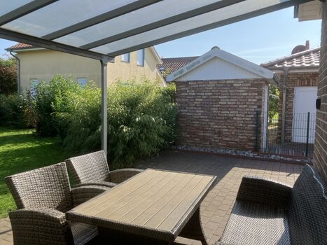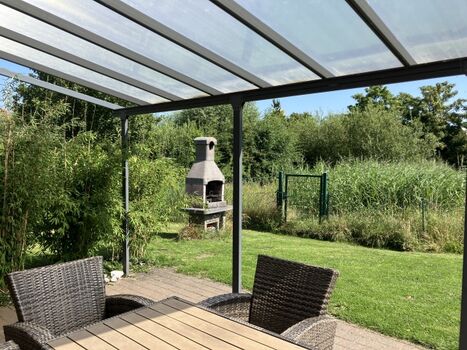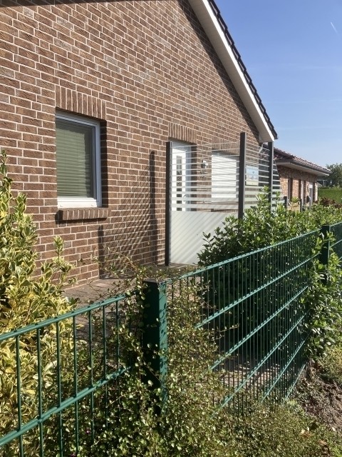 Unser Außenbereich bietet mit seiner vollständigen Umzäunung (Höhe mind. 1,00m) Sicherheit und Freiheit gleichermaßen, ideal für Hundebesitzer. Der eingezäunte Garten lädt zum Verweilen und Spielen ein, während ein Strandkorb Entspannung bietet. Dank der idyllischen Lage, umgeben von Grün und Wasser, finden Sie hier Ruhe abseits des Alltags. Hinzu kommt die Nähe zum Strand, der mit einem speziellen Hunde-Grünstrand inklusive Hundeduschen hervorragend auf die Bedürfnisse von Vierbeinern abgestimmt ist.