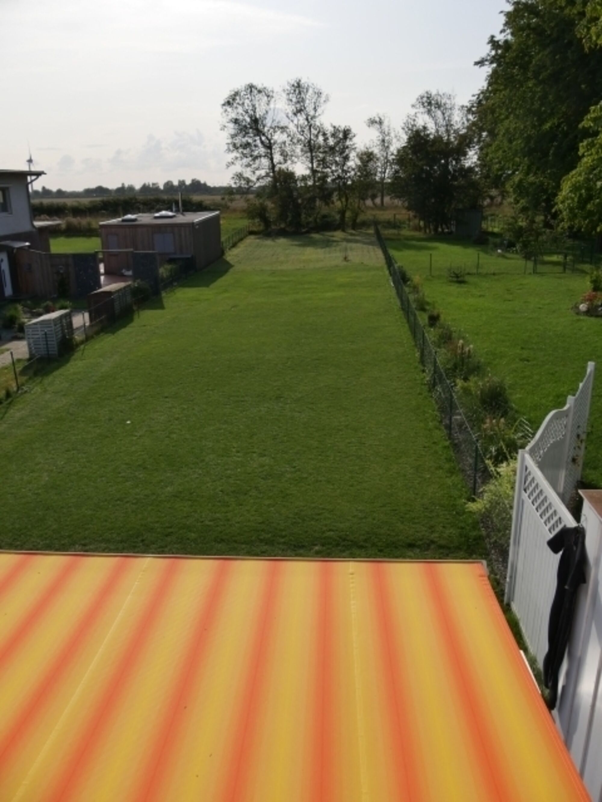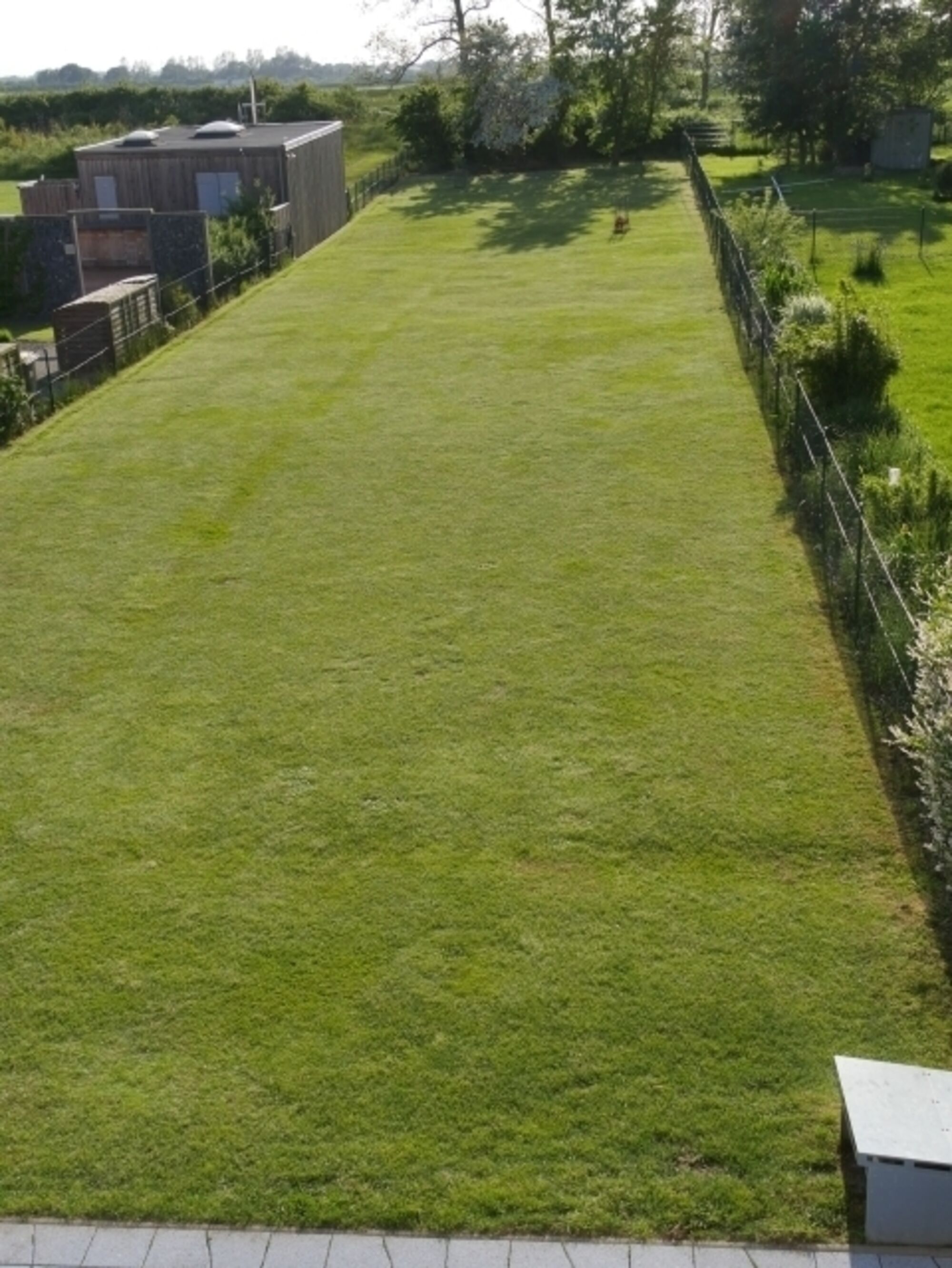 Großer komplett eingezäunter Garten, der Rasen wird von unseren Mäh-Robotern gepflegt.