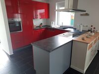 Induktionsherd, Dunstabzugshaube, Kühlschrank mit Gefrierfach, Gefrierschrank, Eierkocher, Mixer, Korkenzieher / Flaschenöffner, Gewürze (Salz, Pfeffer, Zucker), Öl / Essig, Mülltüten, TV in der Küche