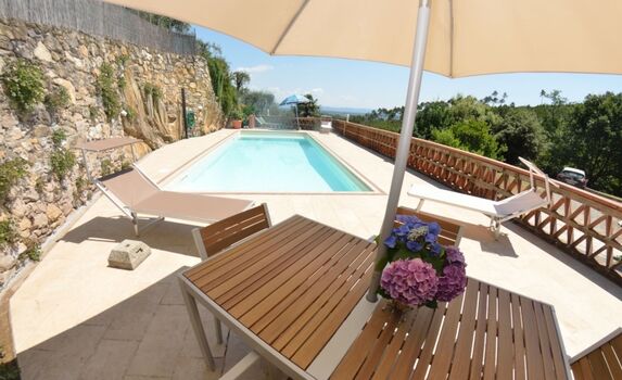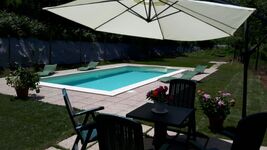 Der private Pool 4x10 Meter liegt im grossen Garten ca 2000 mq vollständig eingezäunt mit einem Haupthaus und einer Dependance .