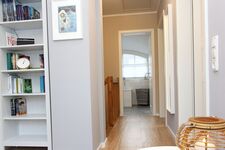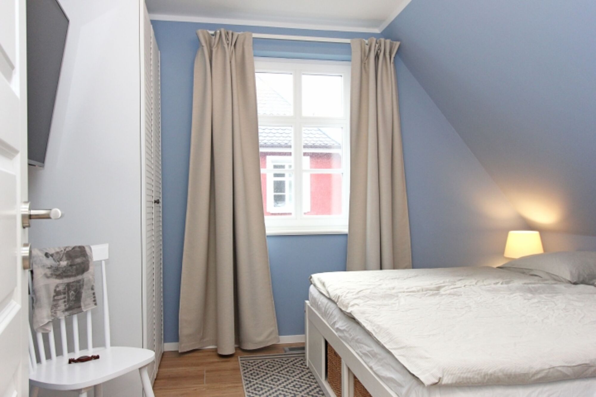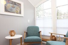 Im Obergeschoss erwarten Sie zwei Schlafzimmer mit jeweils einem Doppelbett sowie ein Schlafzimmer mit einem Einzelbett mit ausziehbarem Bettkasten. Diese Zimmer haben eine Verdunklungsmöglichkeit und sind mit Insektenschutzrollos ausgestattet. Im Erdgeschoss befindet sich ein zusätzliches Gästezimmer mit ausziehbarer Schlafcouch für 1 - 2 Personen.