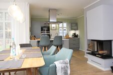 Der Lebensmittelpunkt unseres Hauses ist der großzügige Wohn -und Essbereich mit Kamin. Die hochwertig ausgestattete und zum Wohnzimmer hin offene Küche lässt keine Wünsche offen. Ein großer Esstisch und eine gemütliche Couch komplettieren den Wohnkomfort. Unser Haus verfügt im Erd- und Obergeschoss über ein Badezimmer. Eines mit einer geräumigen Dusche und das andere mit Dusche, Badewanne und angrenzender Sauna.