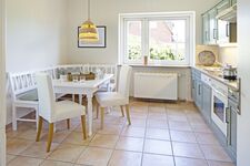 Cerankochfeld, Dunstabzugshaube, Kühlschrank mit Gefrierfach, Nespresso-Automat, Mixer, Korkenzieher / Flaschenöffner, Gewürze (Salz, Pfeffer, Zucker), Essplatz in der Küche
