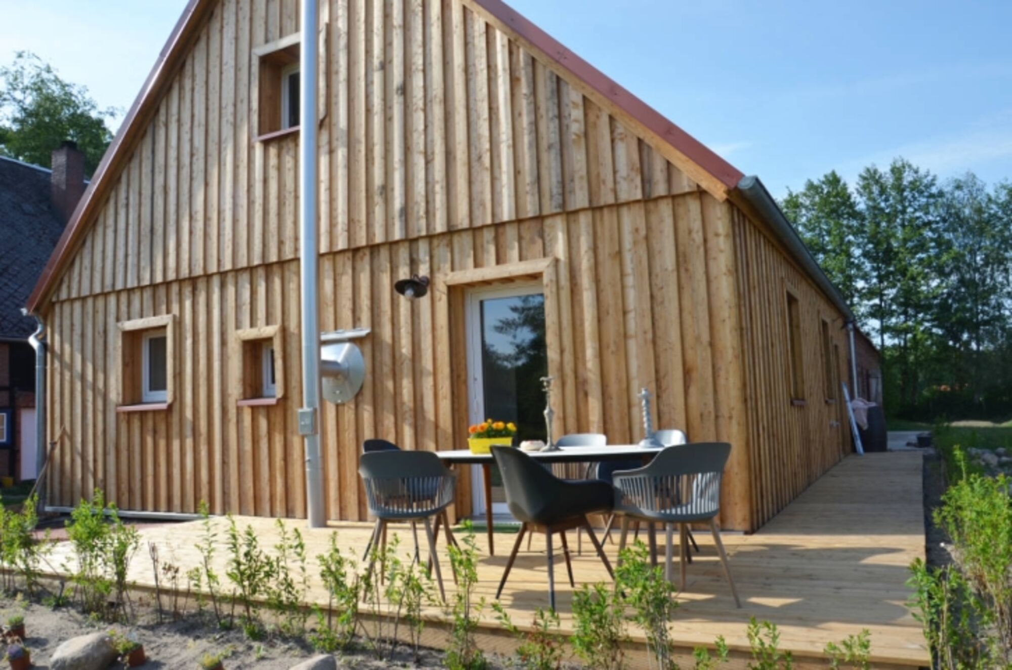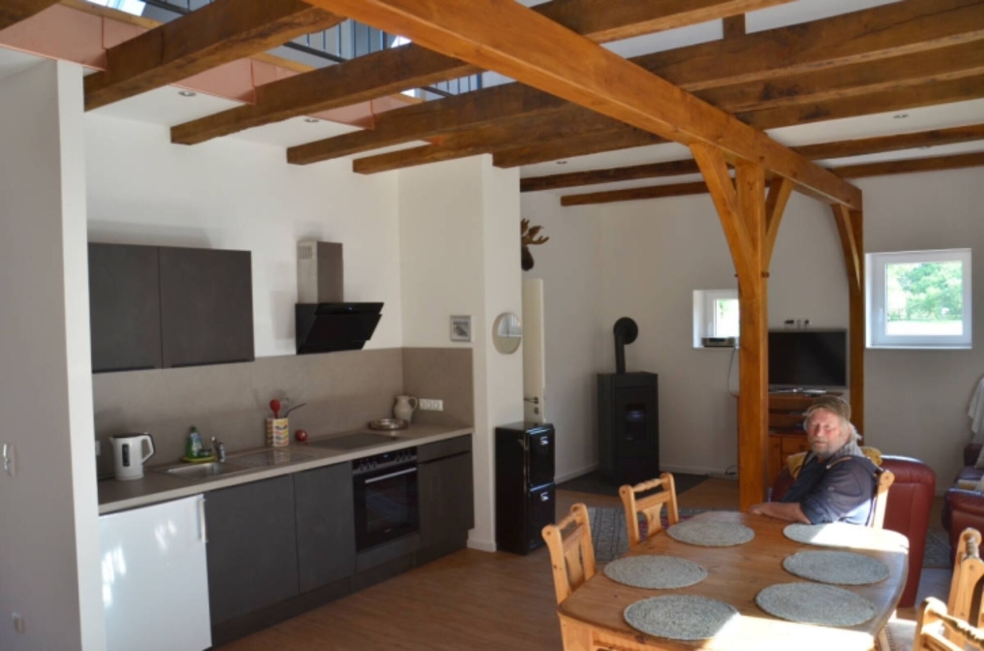 Wir haben im Jahr 2022 ein Gebäude unseres alten Bauernhofs in Groß Heide für Gäste umgebaut. Das Haus bietet auf 110 m² Wohnfläche Platz für 4–6 Gäste. Es hat zwei Schlafzimmer mit drei Doppelbetten, ein neues, modernes Dusch-Bad mit ebenerdiger Dusche, sowie einen offen gestalteten Wohn-Küchen-Essbereich mit Holzofen für gemütliche Stunden auf dem Ledersofa. Das Haus vereint Gemütlichkeit und Komfort – Ankommen und Wohlfühlen.
