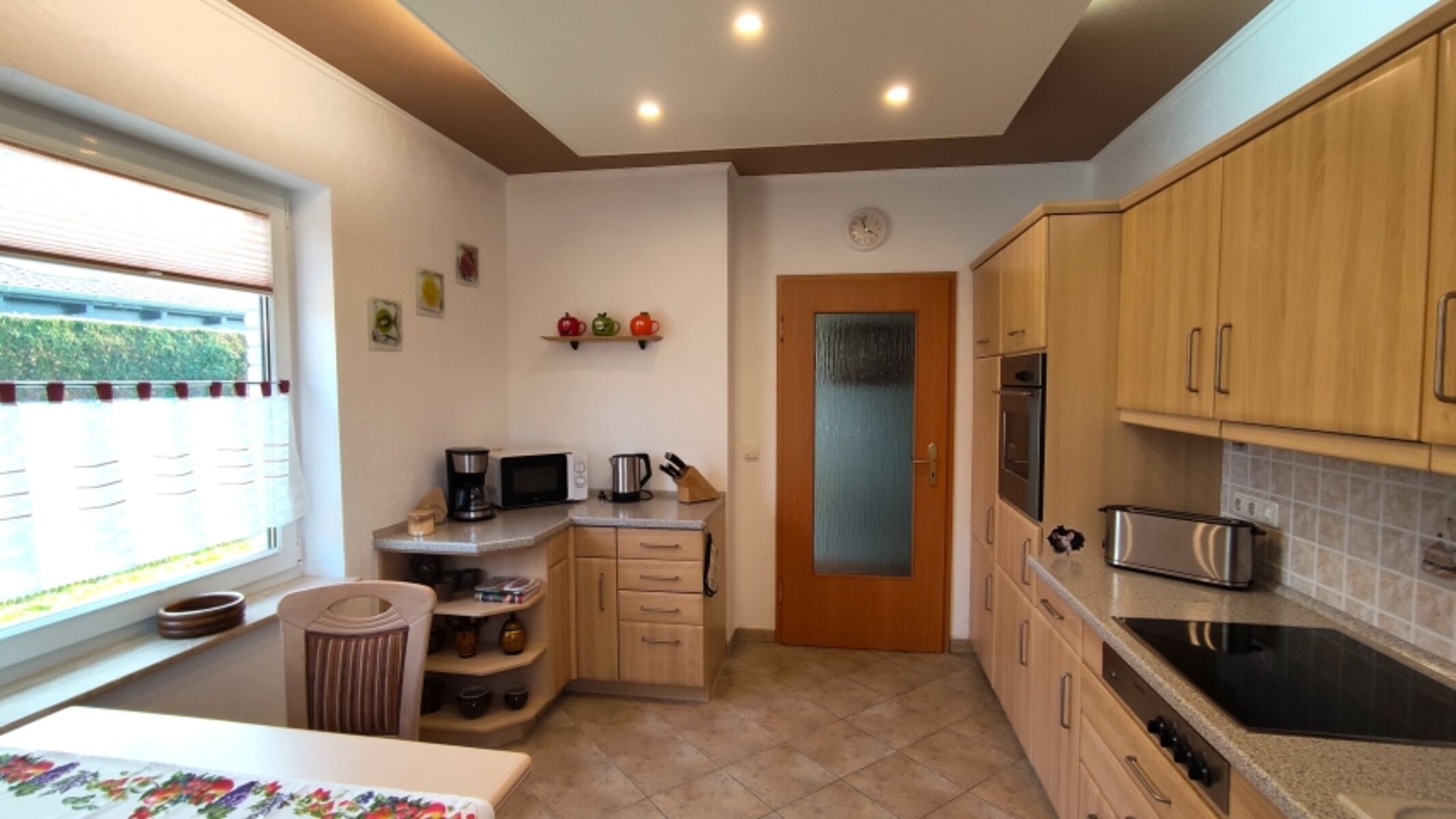 Für ein perfektes Frühstück steht eine Kaffeemaschine (inklusive der Filtertüten), ein Wasserkocher, ein Toaster sowie ein Eierkocher zur Verfügung. Für frisch gebackene Brötchen zum Frühstück, Pommes Frites für zwischendurch oder etwas leckeres am Abend können sie gerne die neue Heißluftfritteuse benutzen.