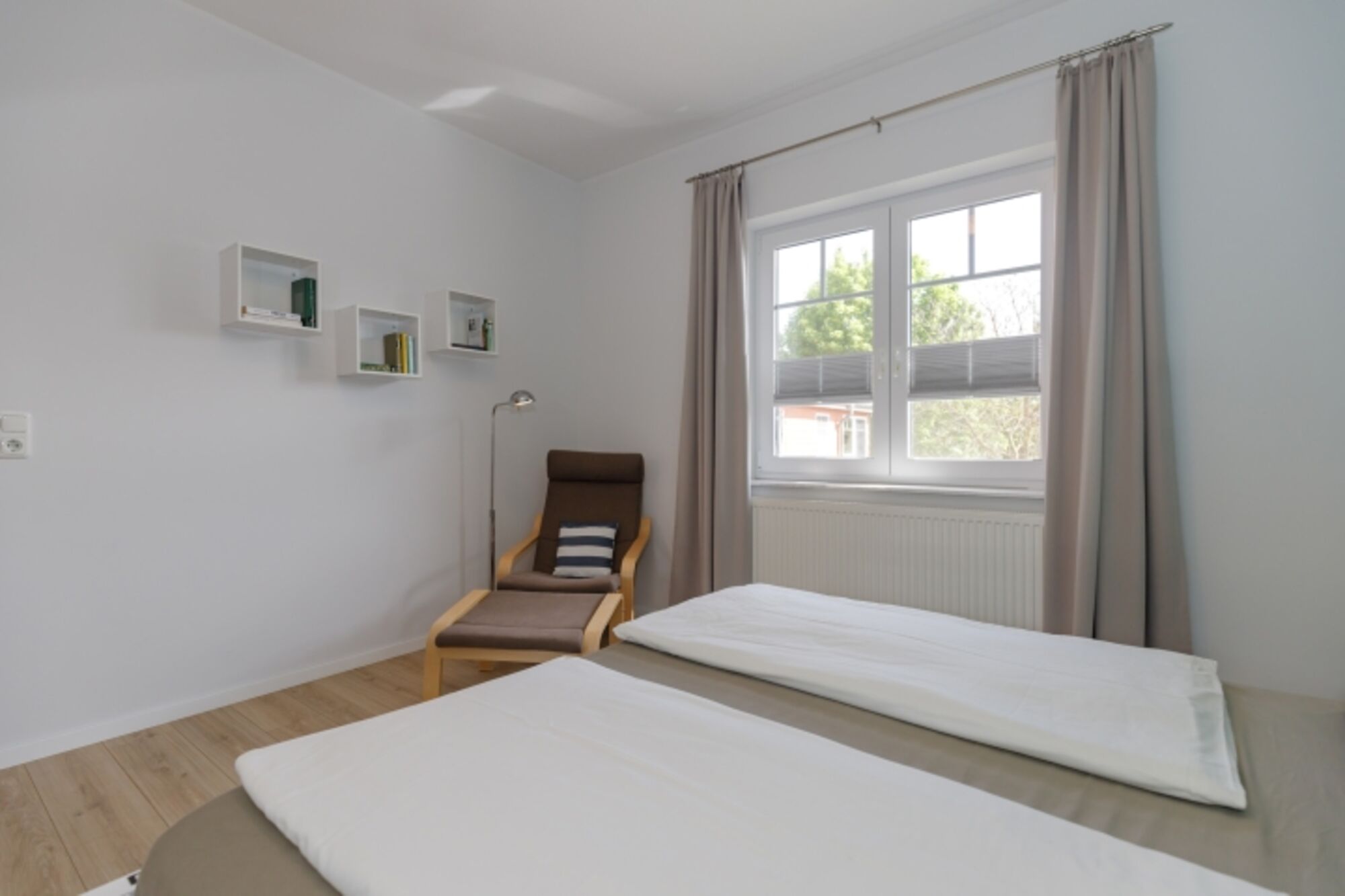 Das große Schlafzimmer hat ein Doppelbett (180x200), hier ist auch Platz für ein Reisekinderbettchen. Im kleinen Schlafzimmer stehen 2 Einzelbetten (90x200) . Bettwäsche ist bereits im Mietpreis enthalten.
