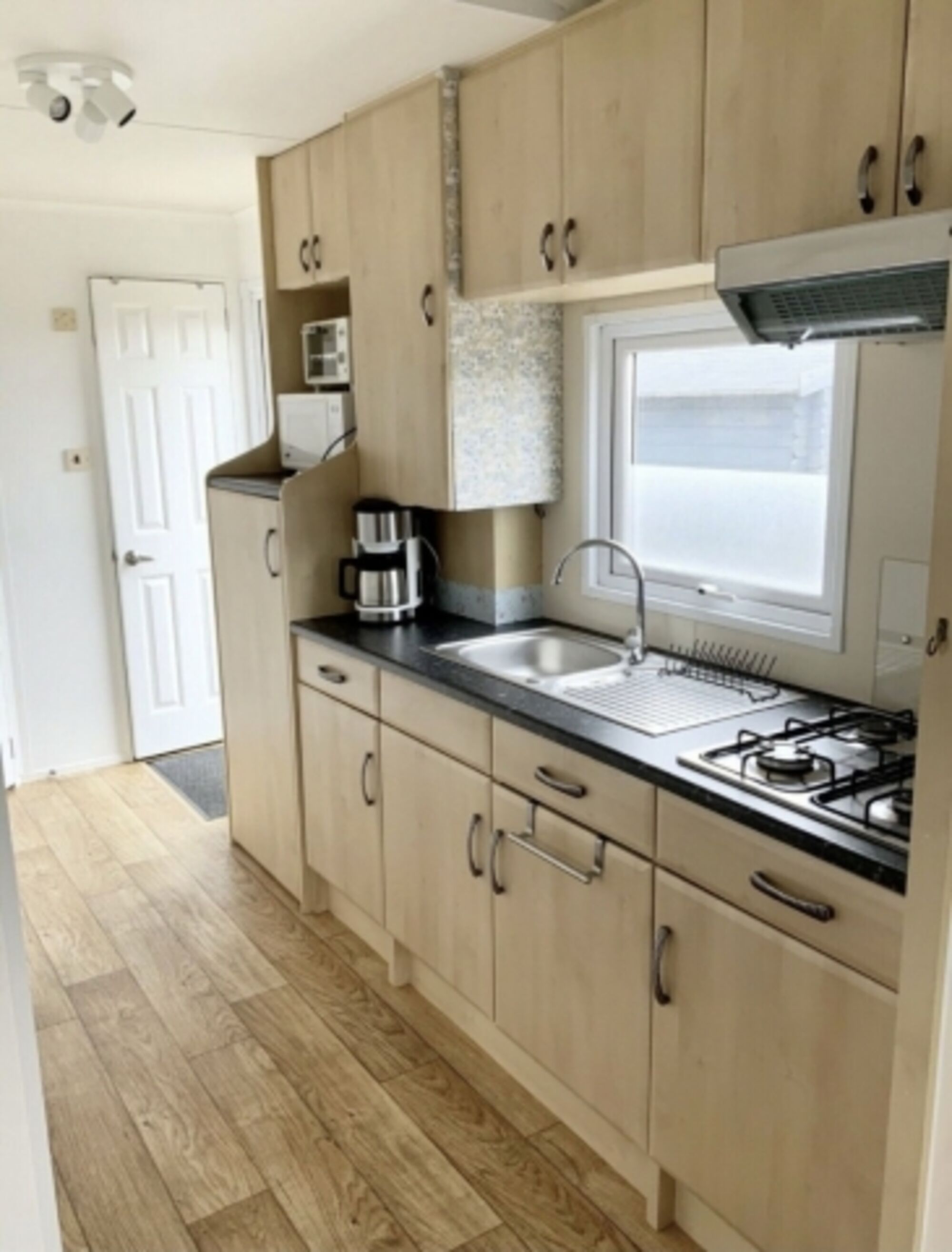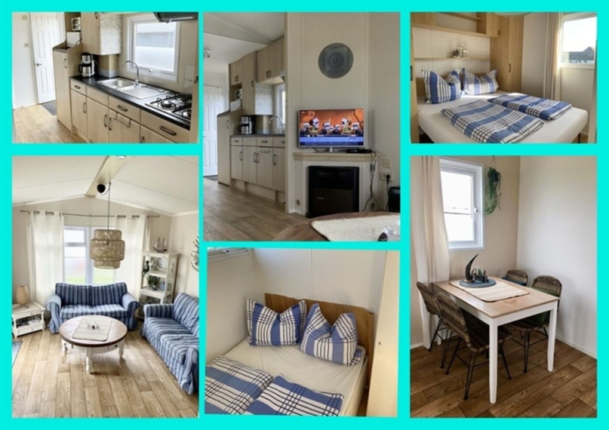 4-Platten Herd, Gasofen / Gasherd, Dunstabzugshaube, Kühlschrank mit Gefrierfach, Senseo-Kaffeeautomat, Korkenzieher / Flaschenöffner, Gewürze (Salz, Pfeffer, Zucker), Geschirrhandtücher, Mülltüten, Essplatz in der Küche, TV in der Küche