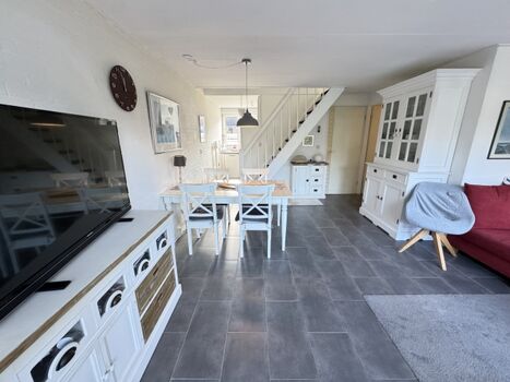 Das Haus bietet Platz für bis zu sechs Personen und ist praktisch sowie komfortabel eingerichtet. Im Erdgeschoss befindet sich ein Schlafzimmer, was das Haus auch für Gäste geeignet macht, die keine Treppen steigen möchten oder besonderen Komfort schätzen. Im Obergeschoss gibt es zwei weitere Schlafzimmer. Die Küche ist komplett ausgestattet, unter anderem mit Geschirrspüler, Backofen und Mikrowelle, sodass Sie auch im Urlaub nicht auf den gewohnten Komfort verzichten müssen.