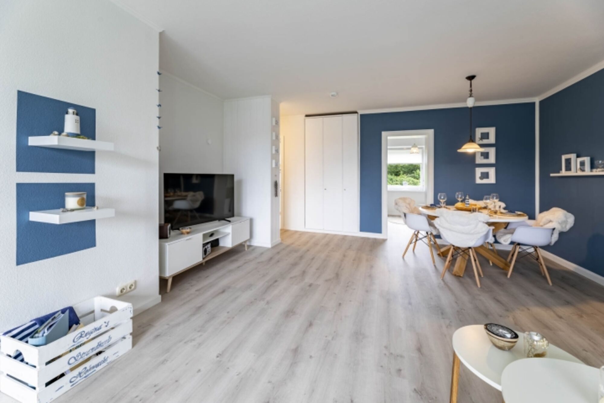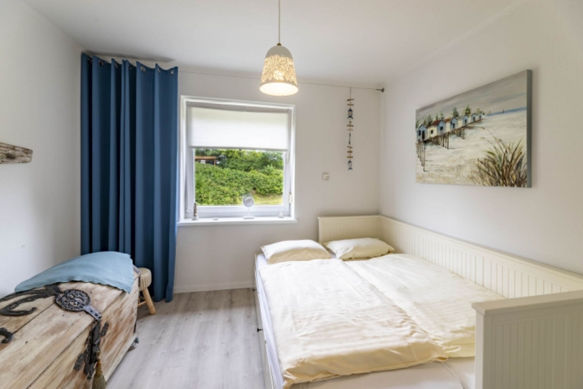 Insgesamt zwei Schlafzimmer sorgen für erholsame Nächte. Ein Doppelschlafzimmer mit Boxspringbett (180x200 cm) sowie ein weiteres Schlafzimmer mit einem Schubkastenbett. Zieht man dieses aus verfügt man in dem 2. Schlafzimmer auch über Doppelbett (160x200 cm)