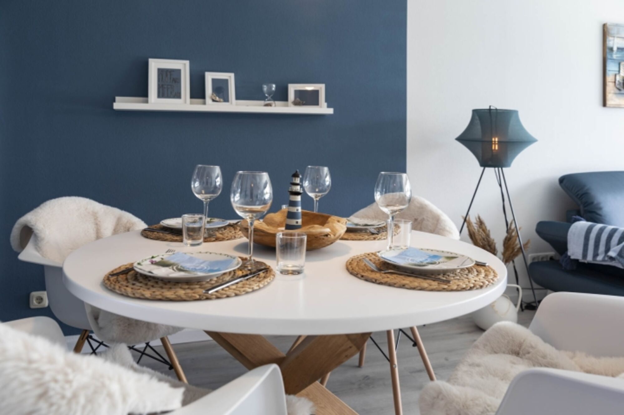 Der Essplatz verfügt über vier Plätze und bietet somit allen Gästen genug Platz, um gemeinsam zu speisen.