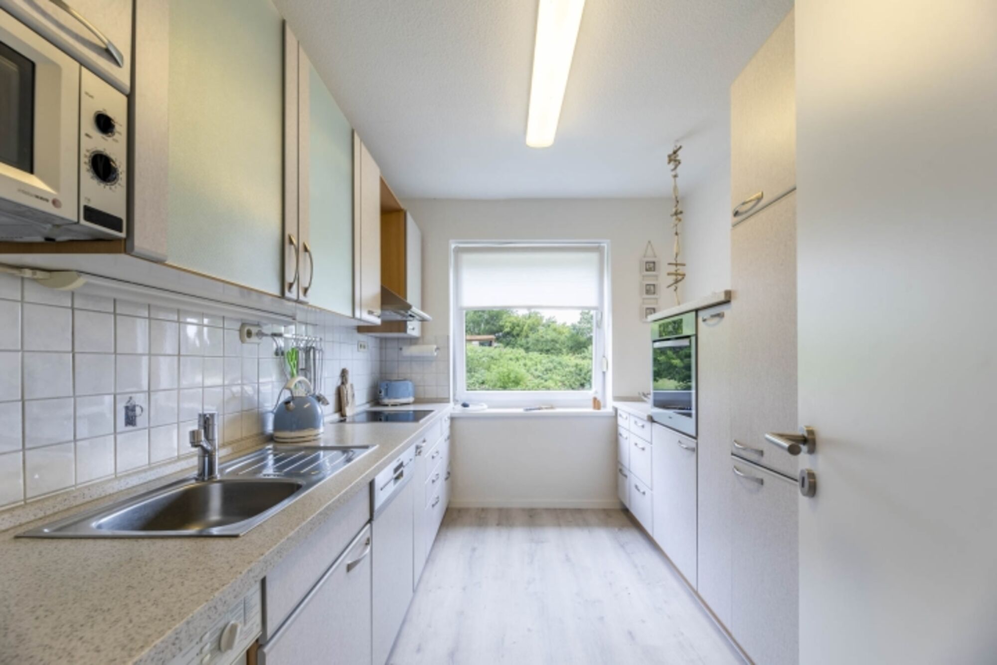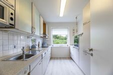 In einem separaten Raum finden Sie die große Küche. Diese ist mit einem Ceran-Kochfeld, Mikrowelle, Backofen, Airfryer Wasserkocher, Kaffeemaschine, Toaster, Thermomix TM6 und einem großen Kühlschrank mit Gefriefach ausgestattet. Um den Komfort vollständig abzurunden befindet sich eine Spülmaschine in der Küche. All dies sorgt für einen guten Start in den Urlaubstag. Des weiteren finden Sie auch eine Waschmaschine in der Küche vor.