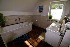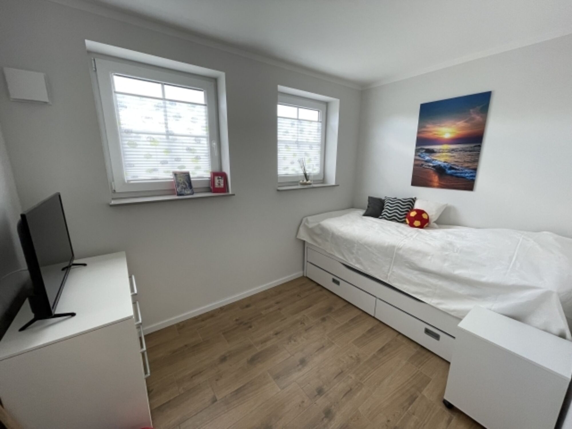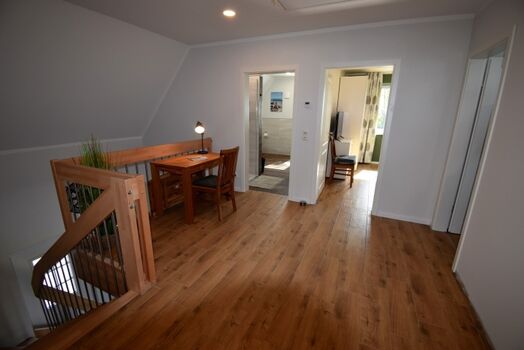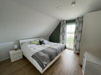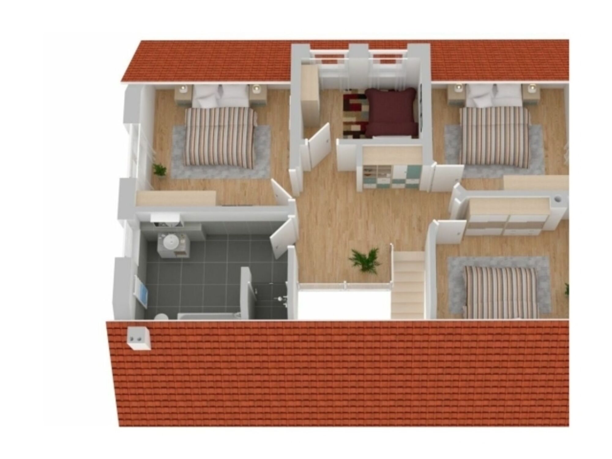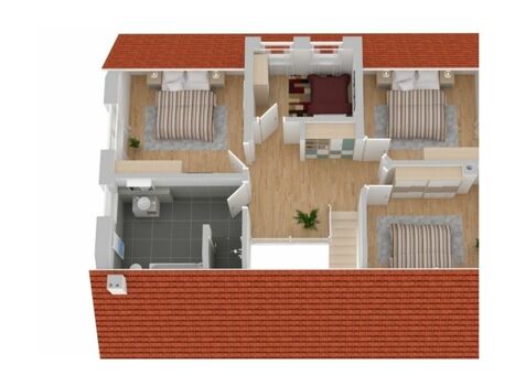 Im Dachgeschoss sind die 4 Schlafzimmer untergebracht. Die 3 großen Schlafzimmer verfügen jeweils über 1 Doppelbett. Das kleine Schlafzimmer ist mit dem ausziehbaren Kojenbett als gemütlicher Schlaf- und Rückzugsort für Ihre Kinder gedacht. Das Tageslichtbad verfügt über Badewanne, Dusche und Doppelwaschtisch.