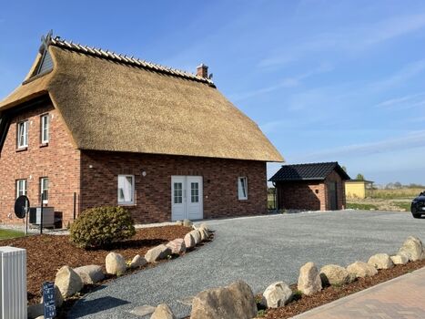 Reetdach-Doppelhaushälfte mit Garten in Boddennähe
