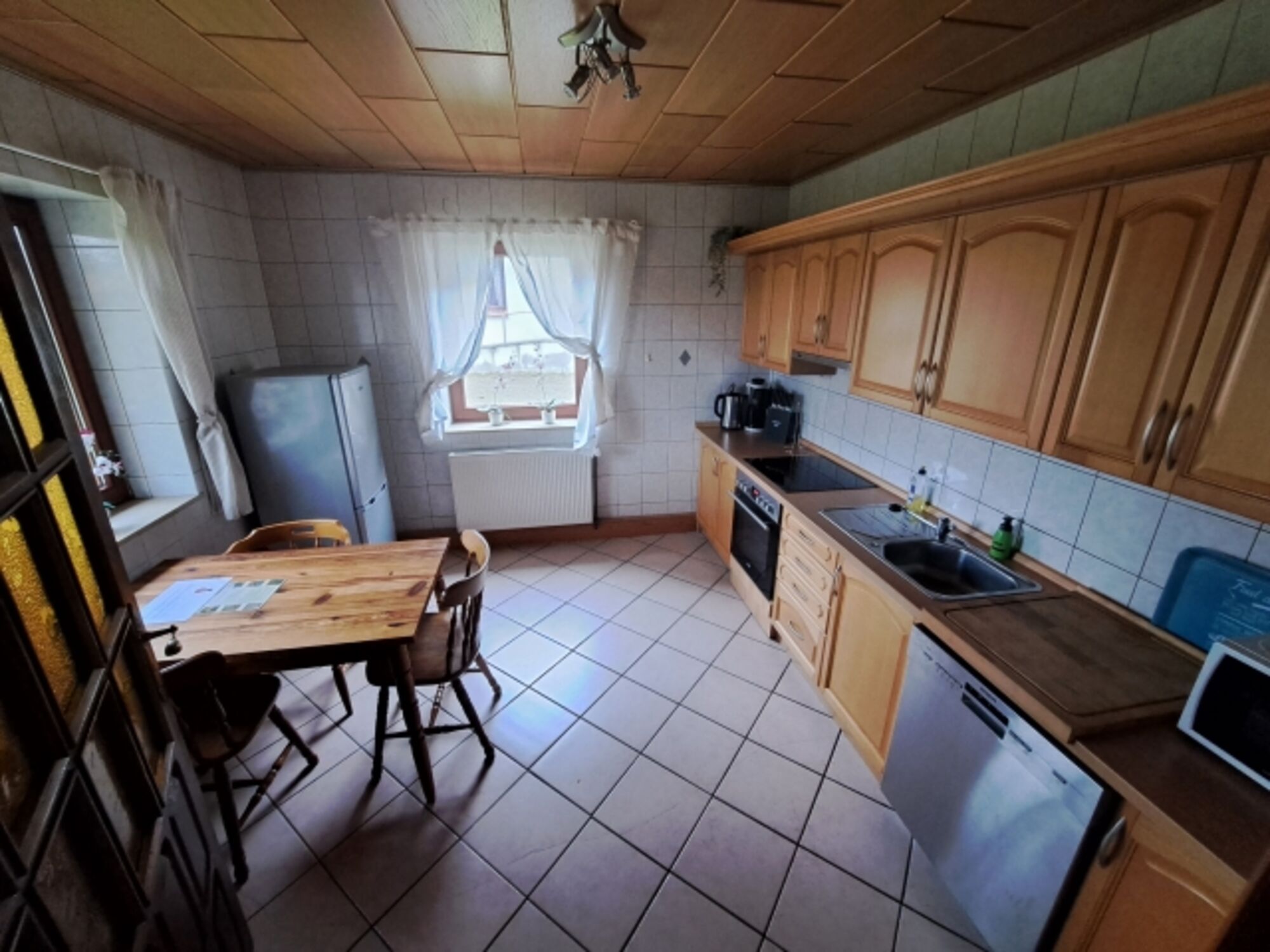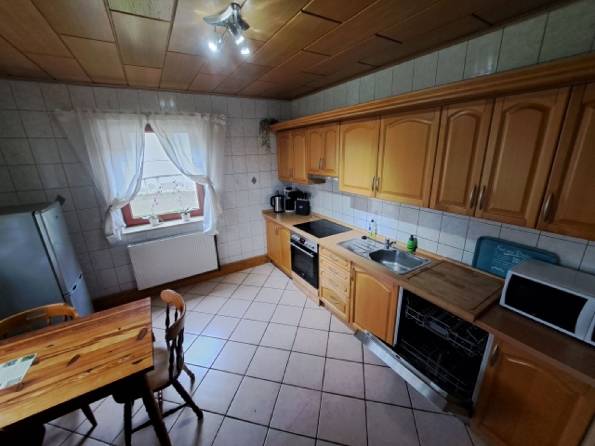 4-Platten Herd, Cerankochfeld, Kühlschrank mit Gefrierfach, Korkenzieher / Flaschenöffner