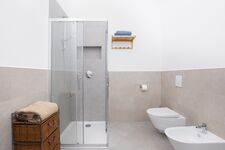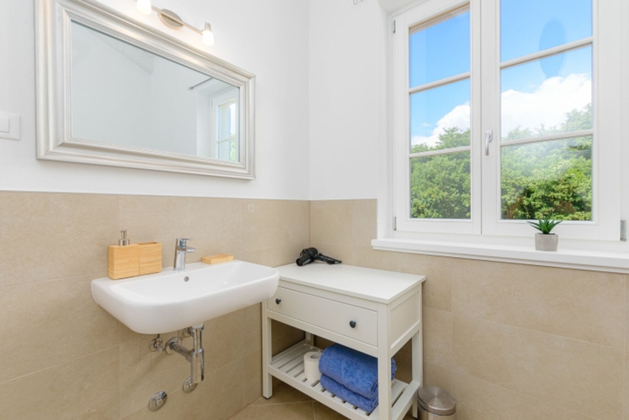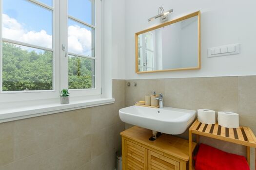 Waschbecken, Spiegel, Fenster im Bad, Bidet