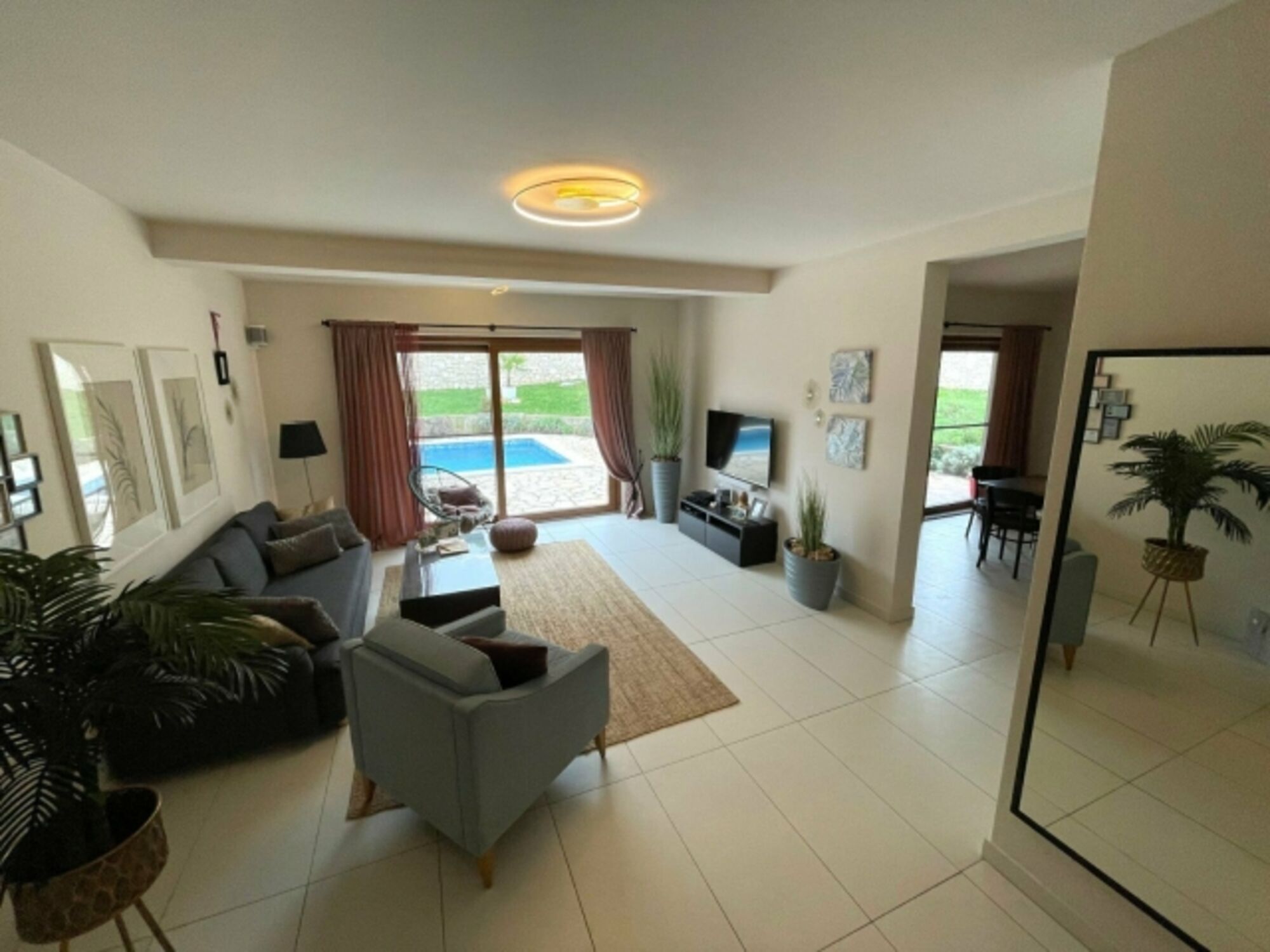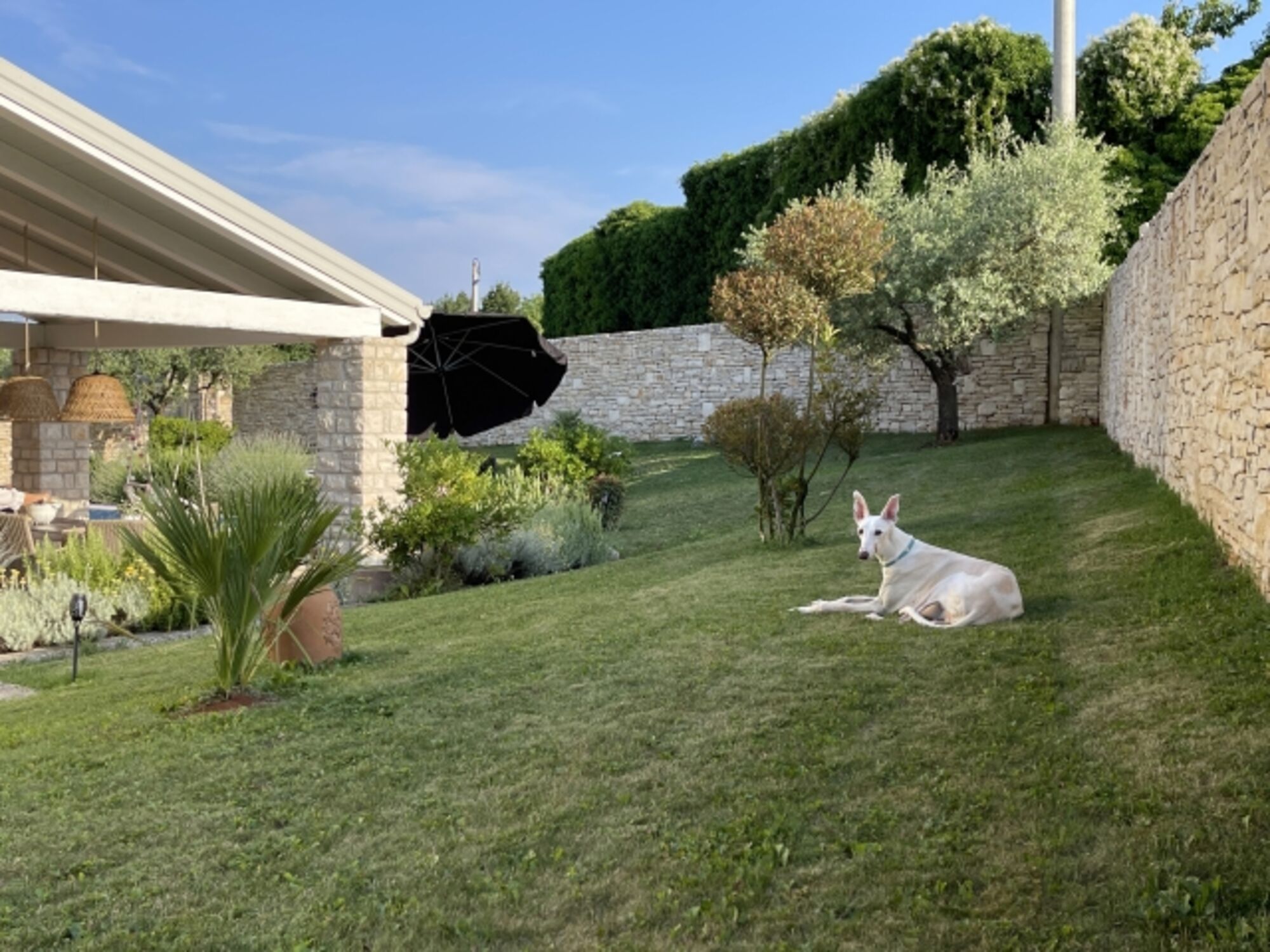 Die Villa ist dank der umlaufenden Steinmauer herrlich sichtgeschützt, was für hohe Privatsphäre und eine ganzjährige Nutzung im Rahmen eines Familienurlaubes sorgt. Das große Grundstück bietet genügend Auslauf für Ihre Vierbeiner (max. 2 Hunde ohne zusätzliche Gebühr).