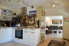4-Platten Herd, Cerankochfeld, Induktionsherd, Dunstabzugshaube, Kühlschrank mit Gefrierfach, Senseo-Kaffeeautomat, Korkenzieher / Flaschenöffner, Gewürze (Salz, Pfeffer, Zucker), Geschirrhandtücher, Mülltüten, Essplatz in der Küche