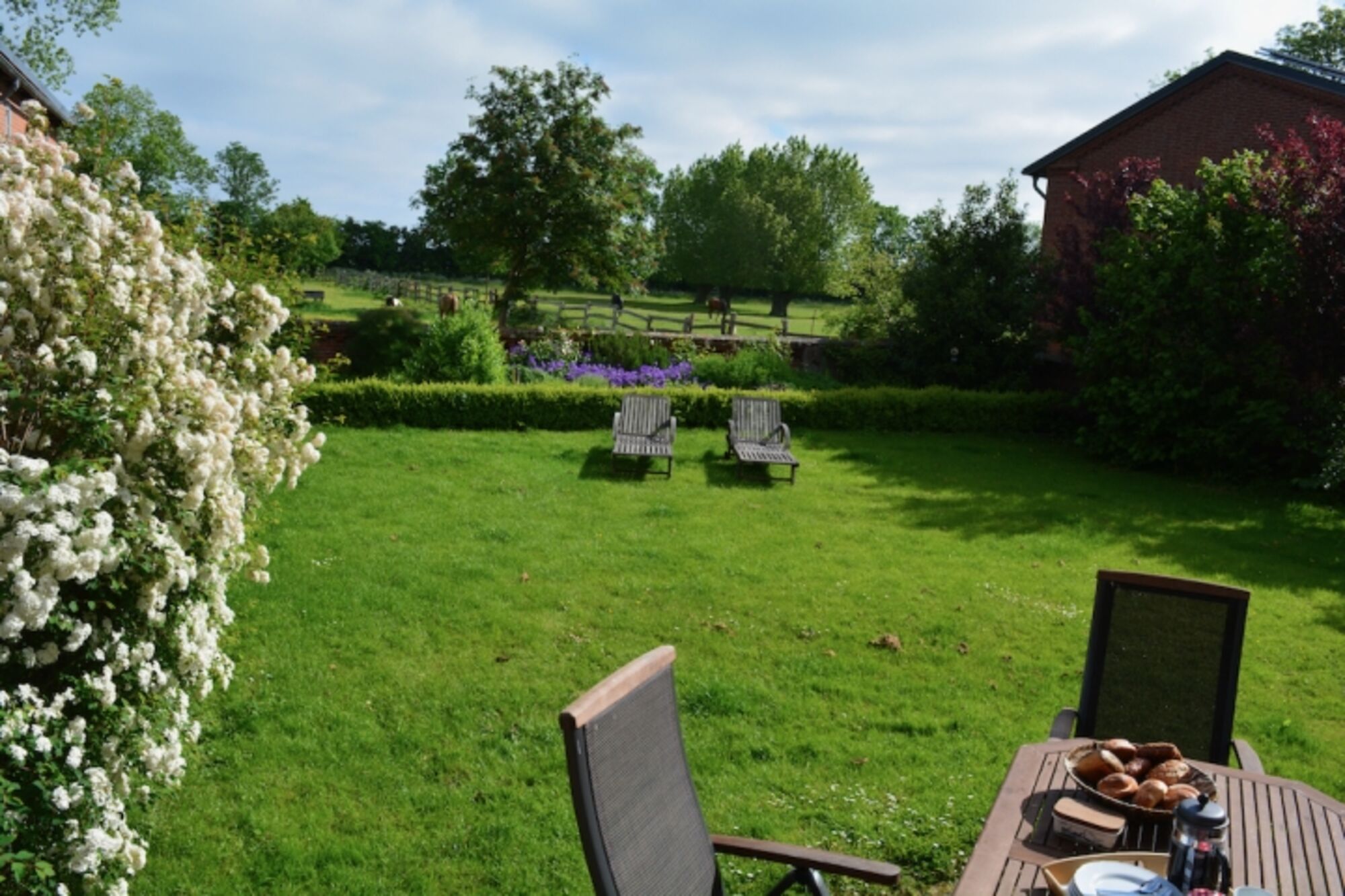 Mit Panoramablick über die Pferdekoppel ins Grüne.
