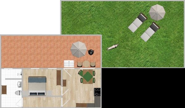 An sonnigen Tagen genießen Sie die geschützte Terrasse mit Grillmöglichkeit und eigenem Gartengelände.