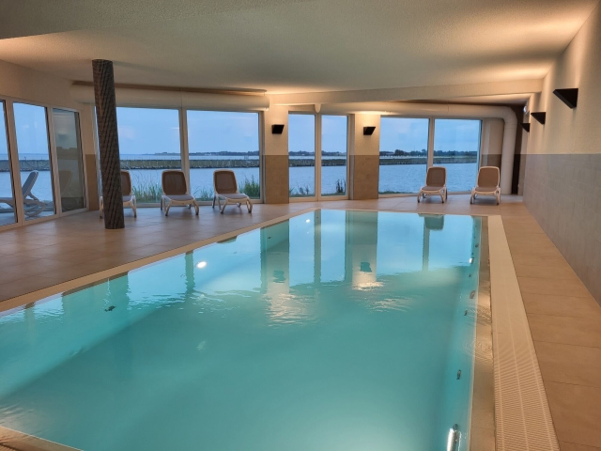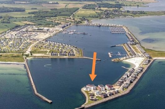 Die Wohnung liegt am Ende der Mole, mitten auf der Ostsee, Umgeben von Wasser.