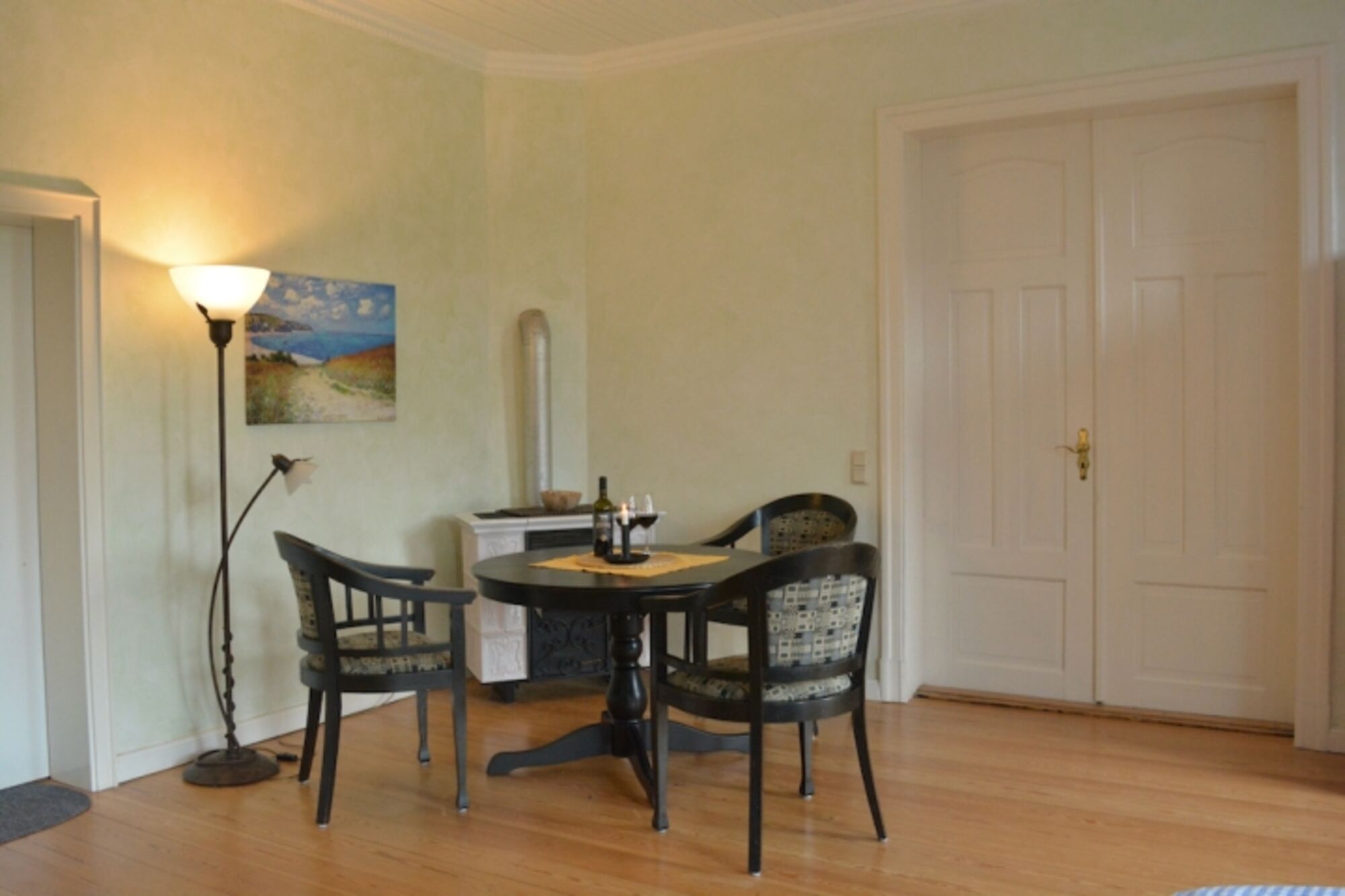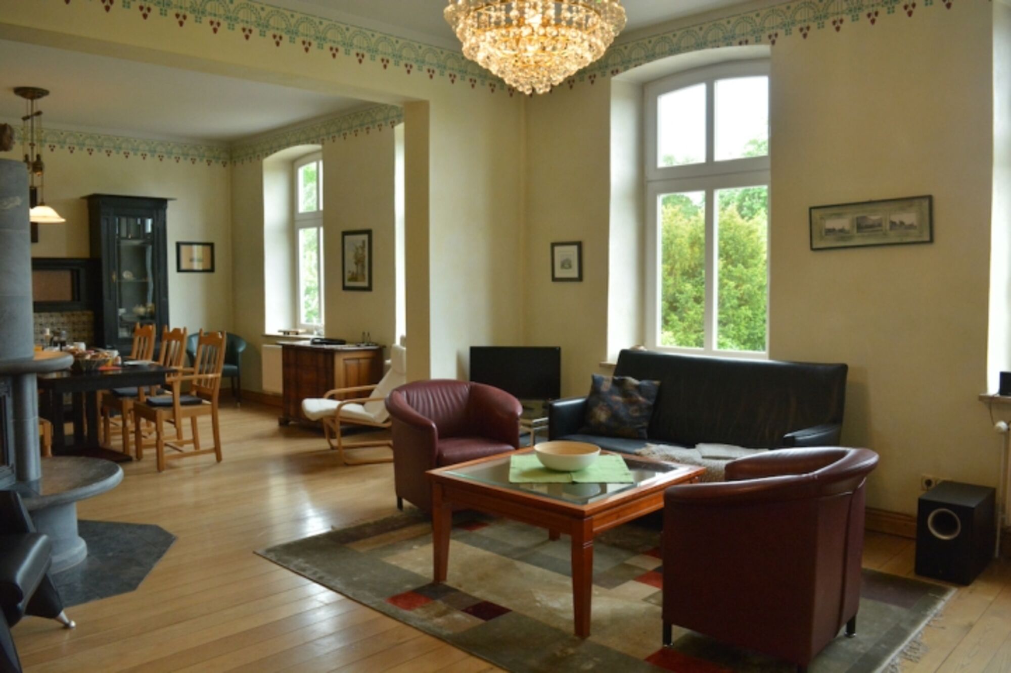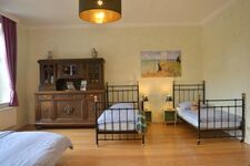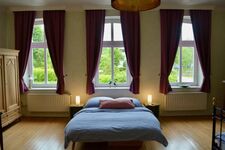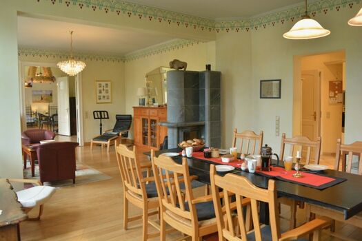 Auf 150qm das luxuriöse Flair des Gutshauses genießen. Große weitläufige Räumlichkeiten mit den traditionell hohen Decken und Intarsienmalereien im gotischen Backhaus Stil. Ein stattlicher Specksteinofen im Herzen des Hauses besiegelt die Urlaubsabende mit loderndem, knackenden Feuerspektakel. In der hochwertigen und großzügigen Landhausküche fühlt man sich in die Zeiten der Großfamilien zurückversetzt und läßt keine Wünsche offen. Die Weite der 3 geräumigen Schlafzimmer mit hochwertiger Einrichtung sorgen für erholsamen Schlaf und Komfort für alle Ansprüche von Klein bis Groß.