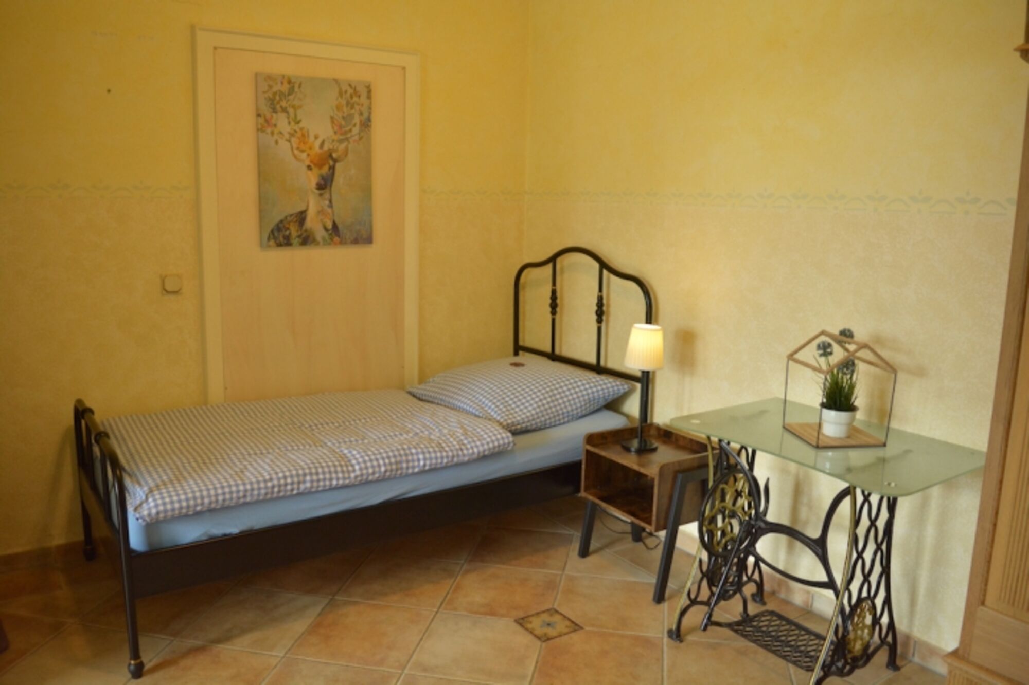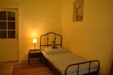 Einzelbett, Kommode, Leselampe am Bett, Fliegengitter