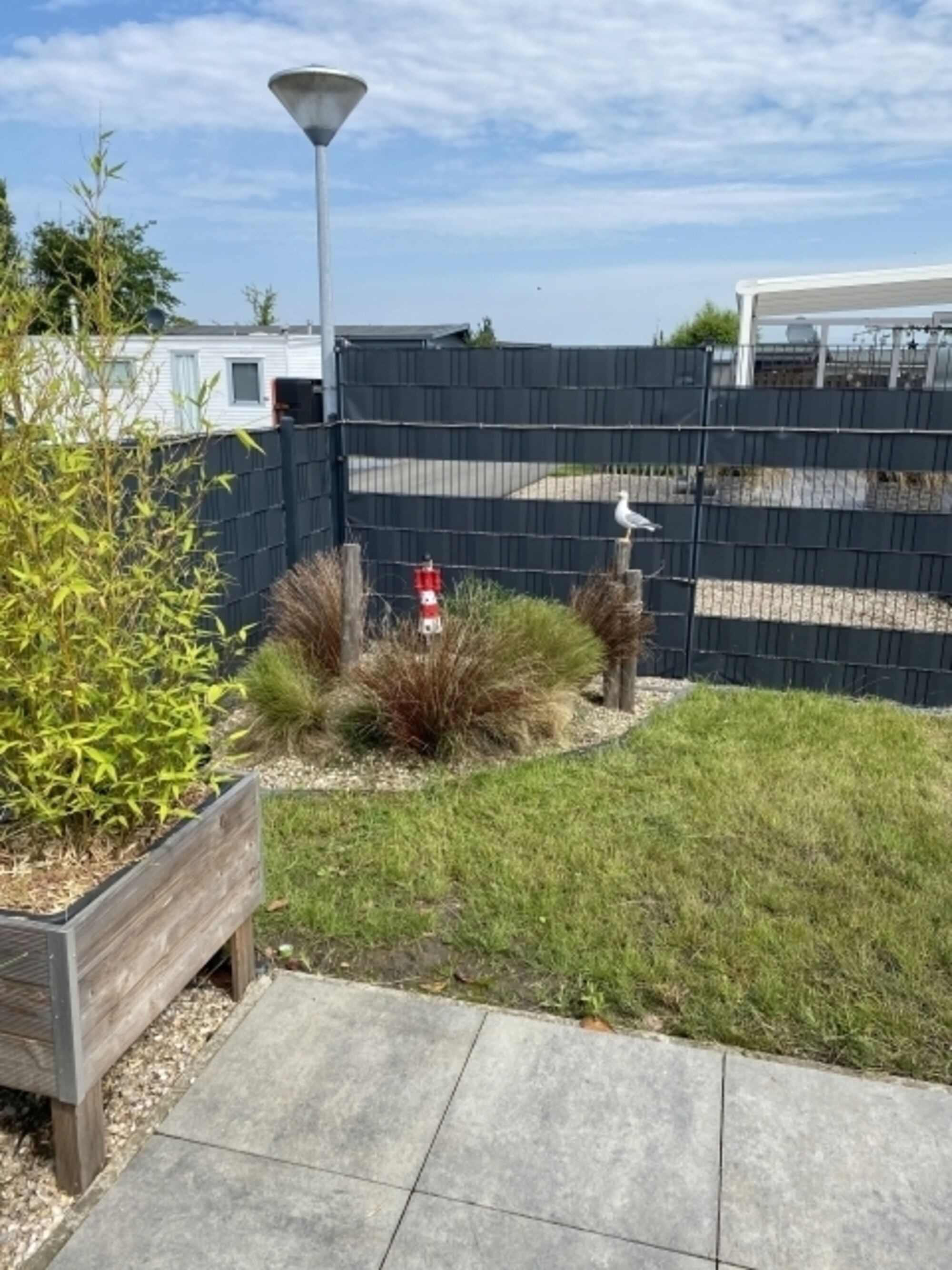 Im sichtgeschützten Außenbereich stehen ein Gartenhaus, Gartenmöbel und ein Holzkohlegrill zur Verfügung.