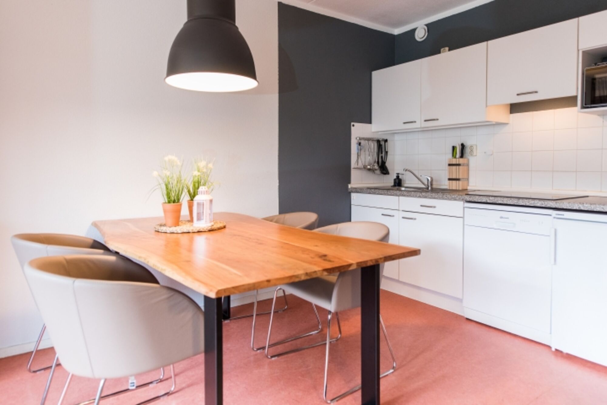 Die sehr schöne und praktische Küchenzeile verfügt über eine Spülmaschine, Mikrowelle, einen Kühlschrank mit Gefrierfach und eine Kaffeemaschine - hier können Sie sowohl mehrere Gänge als auch "auf die Schnelle" etwas zubereiten.