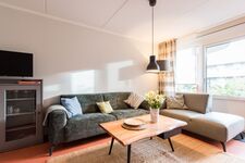 Lichtdurchflutete 75 qm bieten Ihnen ausreichend Platz für 4 Personen. Das gemütliche Wohnzimmer ist ausgestattet mit großzügigen Sofas, je einem 2er und einem 3er sowie einem Sessel. Wir empfangen nahezu alle deutschen Programme. Gemütliche Fernsehabende sind garantiert. Kostenloses WLAN ist mit inbegriffen.