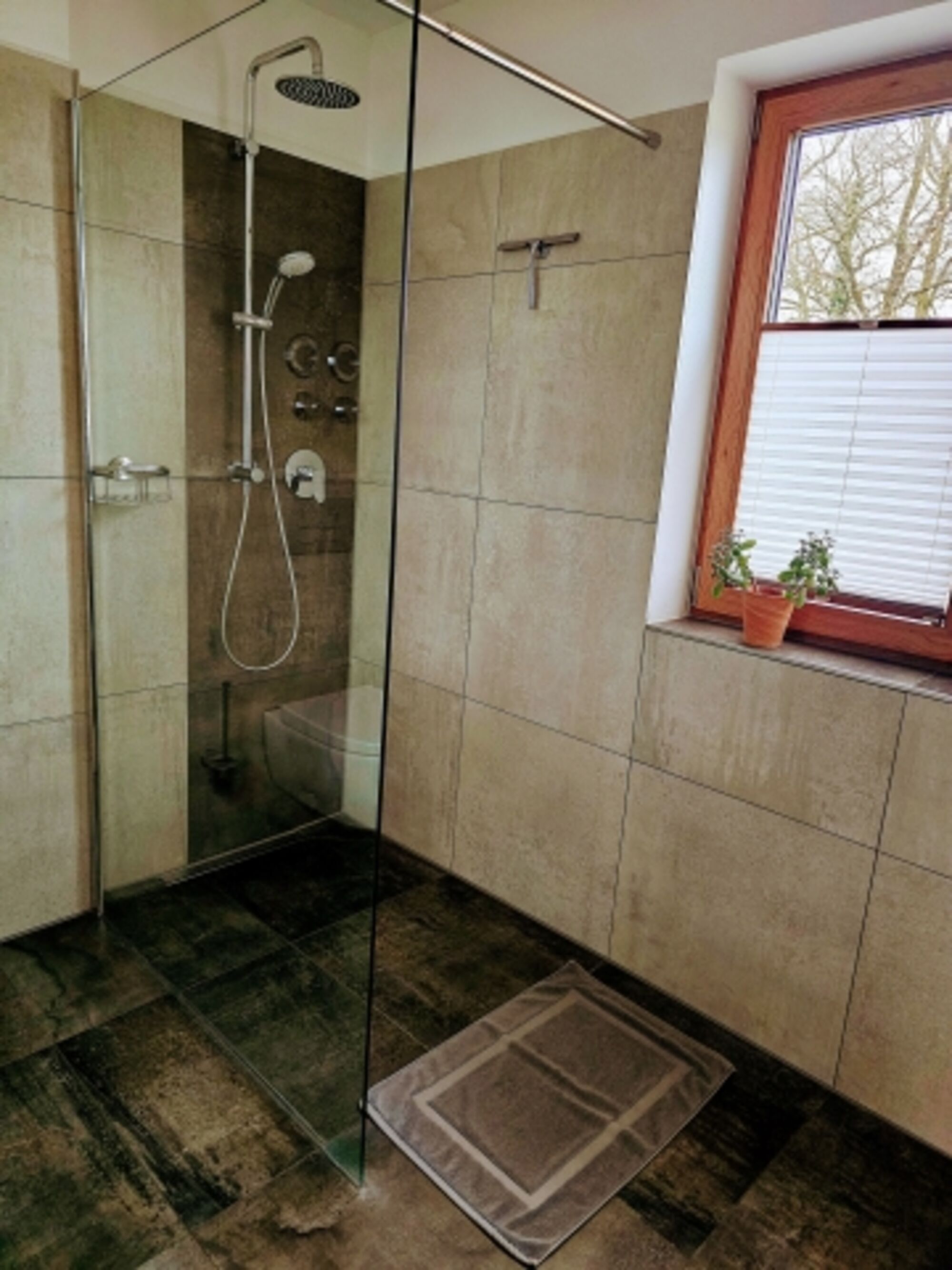 Badezimmer: Modernes, barrierefreies Duschbad mit WC.