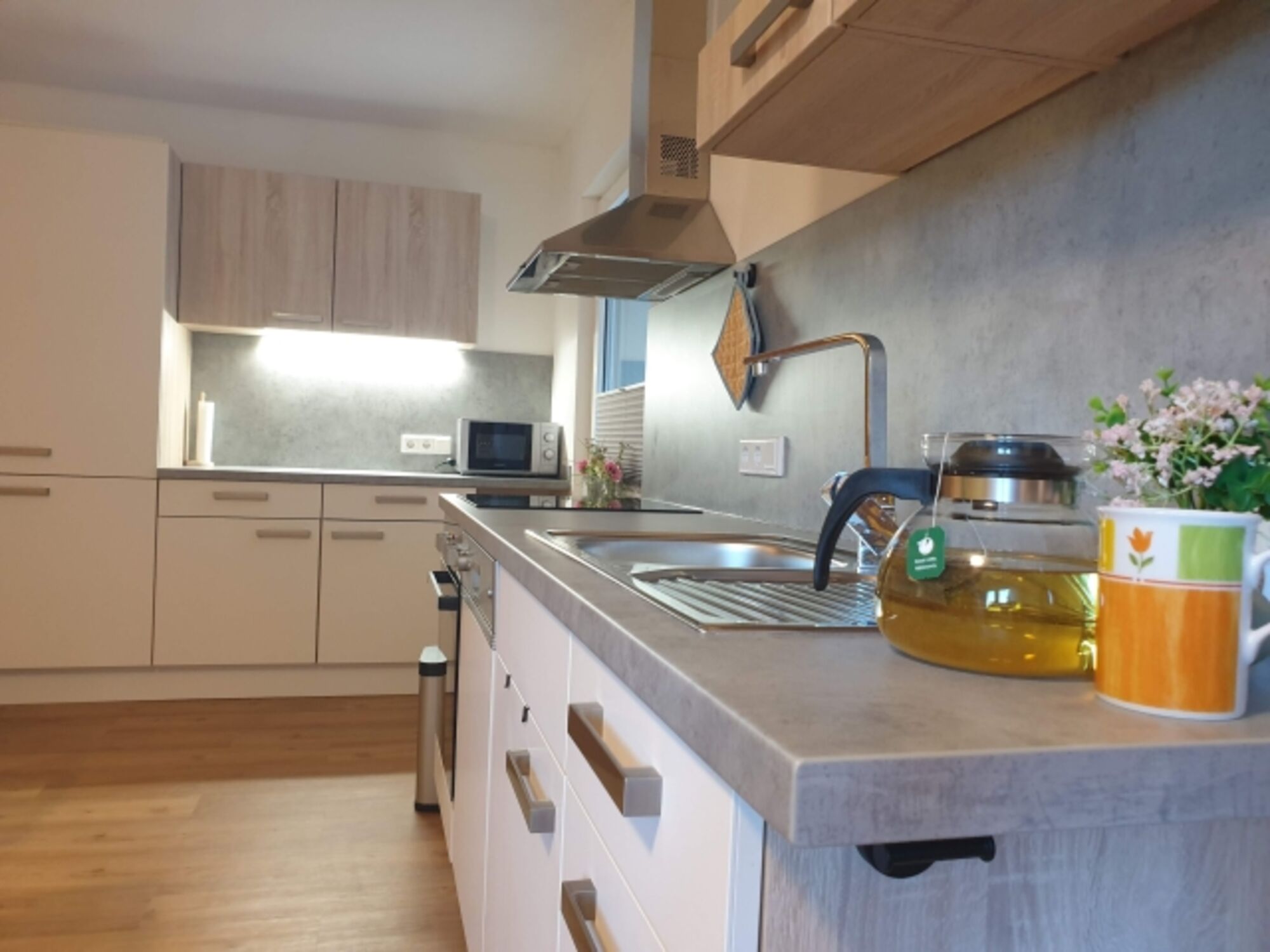 4-Platten Herd, Cerankochfeld, Dunstabzugshaube, Kühlschrank mit Gefrierfach, Gefrierschrank, Korkenzieher / Flaschenöffner, Gewürze (Salz, Pfeffer, Zucker), Geschirrhandtücher, Mülltüten, Essplatz in der Küche, TV in der Küche