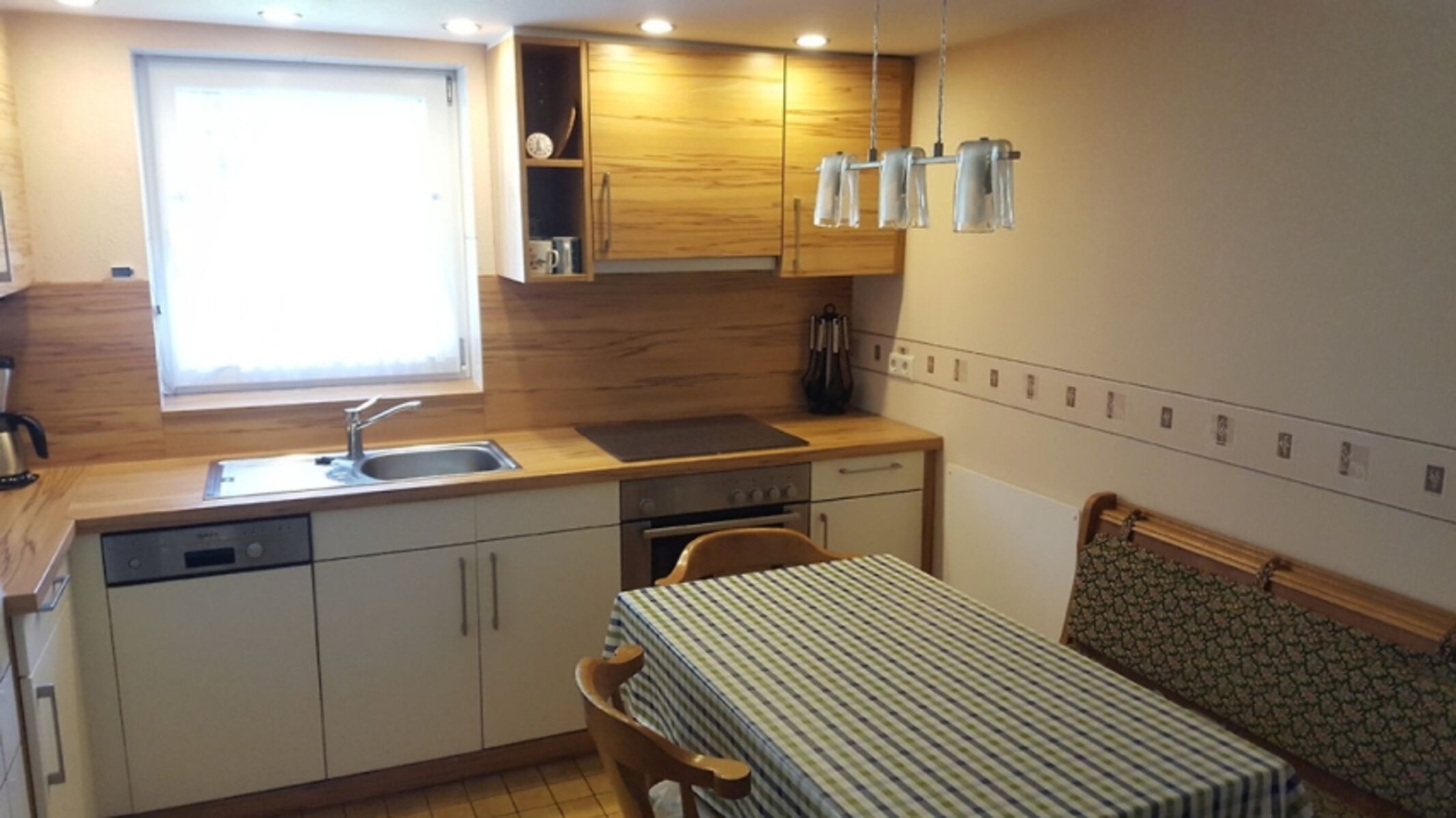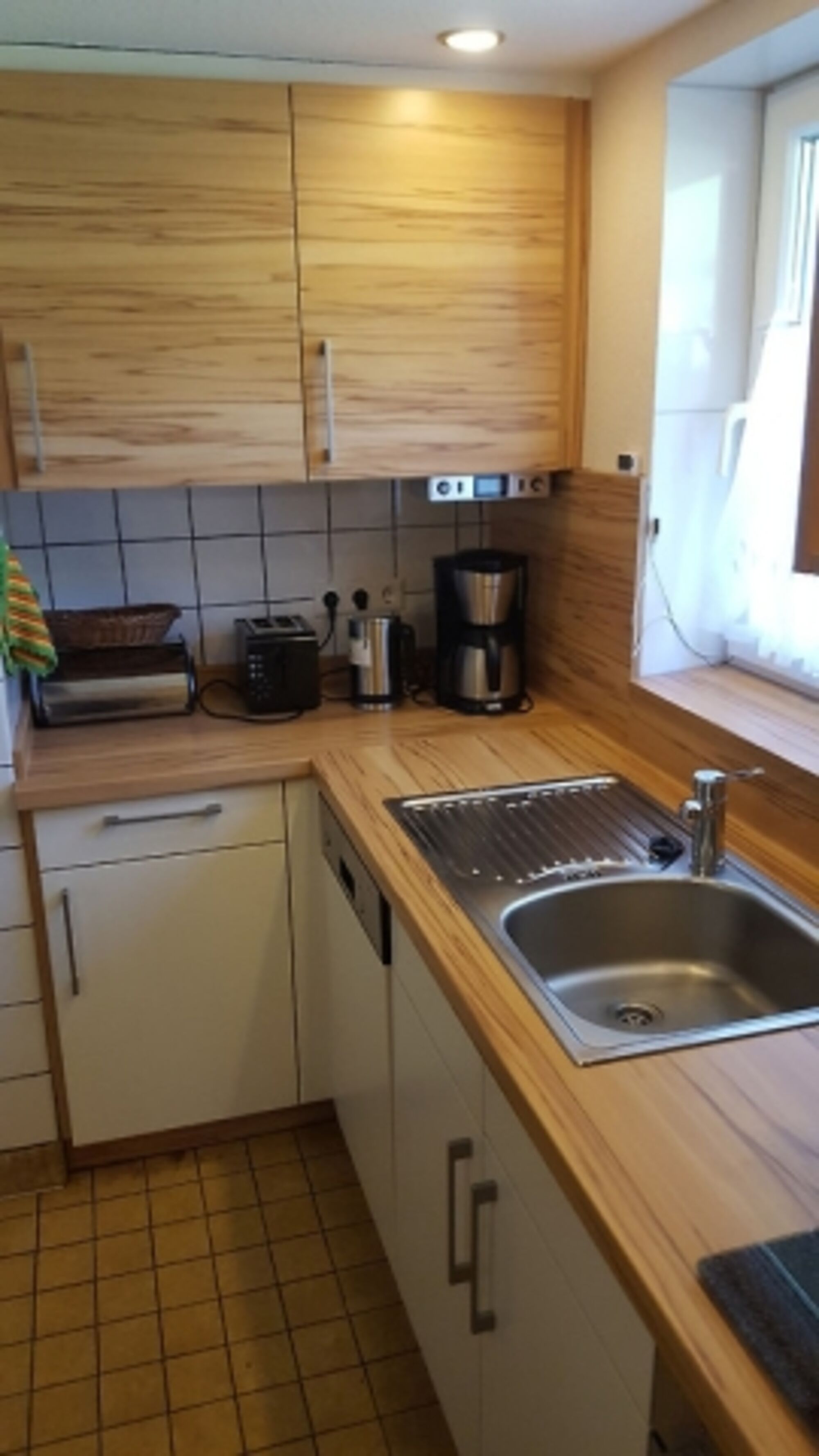 4-Platten Herd, Cerankochfeld, Dunstabzugshaube, Gefrierschrank, Korkenzieher / Flaschenöffner, Gewürze (Salz, Pfeffer, Zucker), Öl / Essig, Geschirrhandtücher, Mülltüten, Essplatz in der Küche