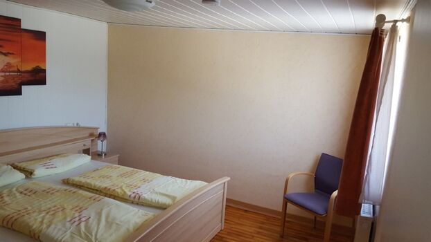 Doppelbett 2,00 x 2,00m, Kommode, Leselampe am Bett