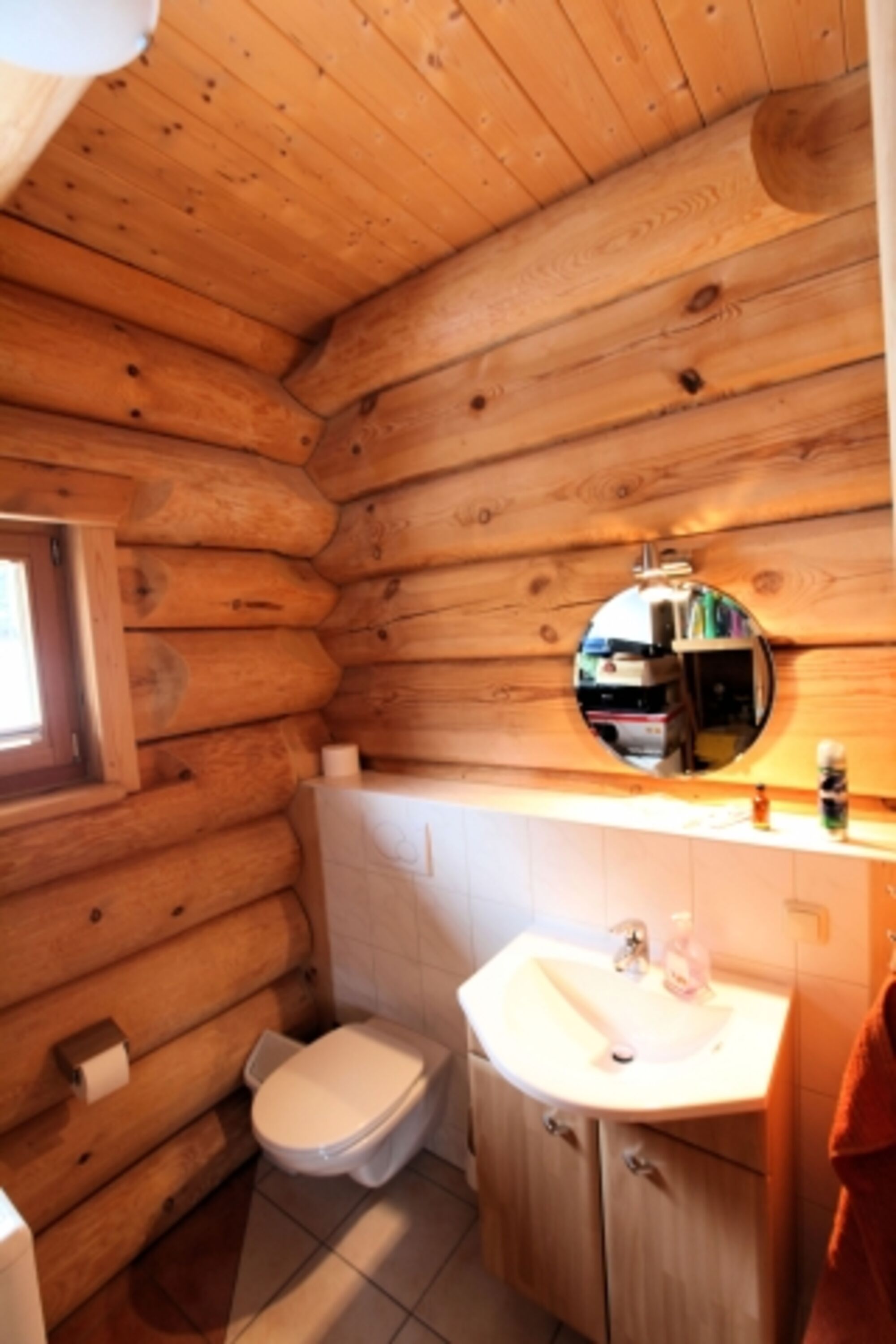 Echtes kanadisches Blockhaus mit Sauna, Whirlpool und großer Terrasse