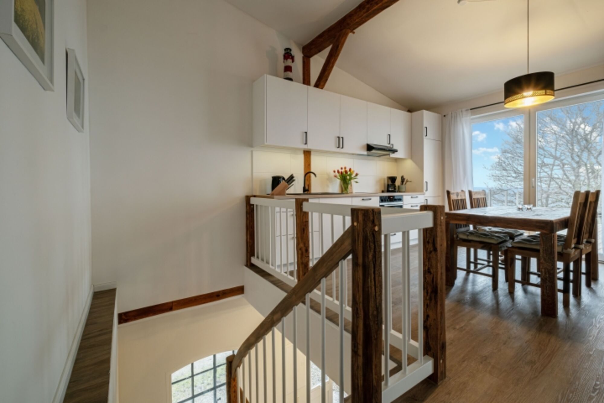Genießen Sie Ihren Urlaub in entspannter Atmosphäre direkt am Ostseestrand und Meer. Die Ferienwohnung Westscheune am Mühlendamm bietet, mit ihrem individuellen Loft-Charme und Panoramafenster, den perfekten Rahmen zum Wohlfühlen und Verweilen. Ein unverbauter Meerblick (bis nach Dänemark), eine private Sauna, freigelegte Deckenbalken, ein Ofen, schöne Dielenböden und die individuelle sowie geschmackvolle Einrichtung laden zum Wohlfühlen ein. Die neue Wohnküche, mit den liebevoll aufgearbeiteten Möbeln ist umfangreich ausgestattet. Hier können Sie sich nach Lust und Laune selbst versorgen oder direkt auf der Dachterrasse Ihre Auszeit genießen.