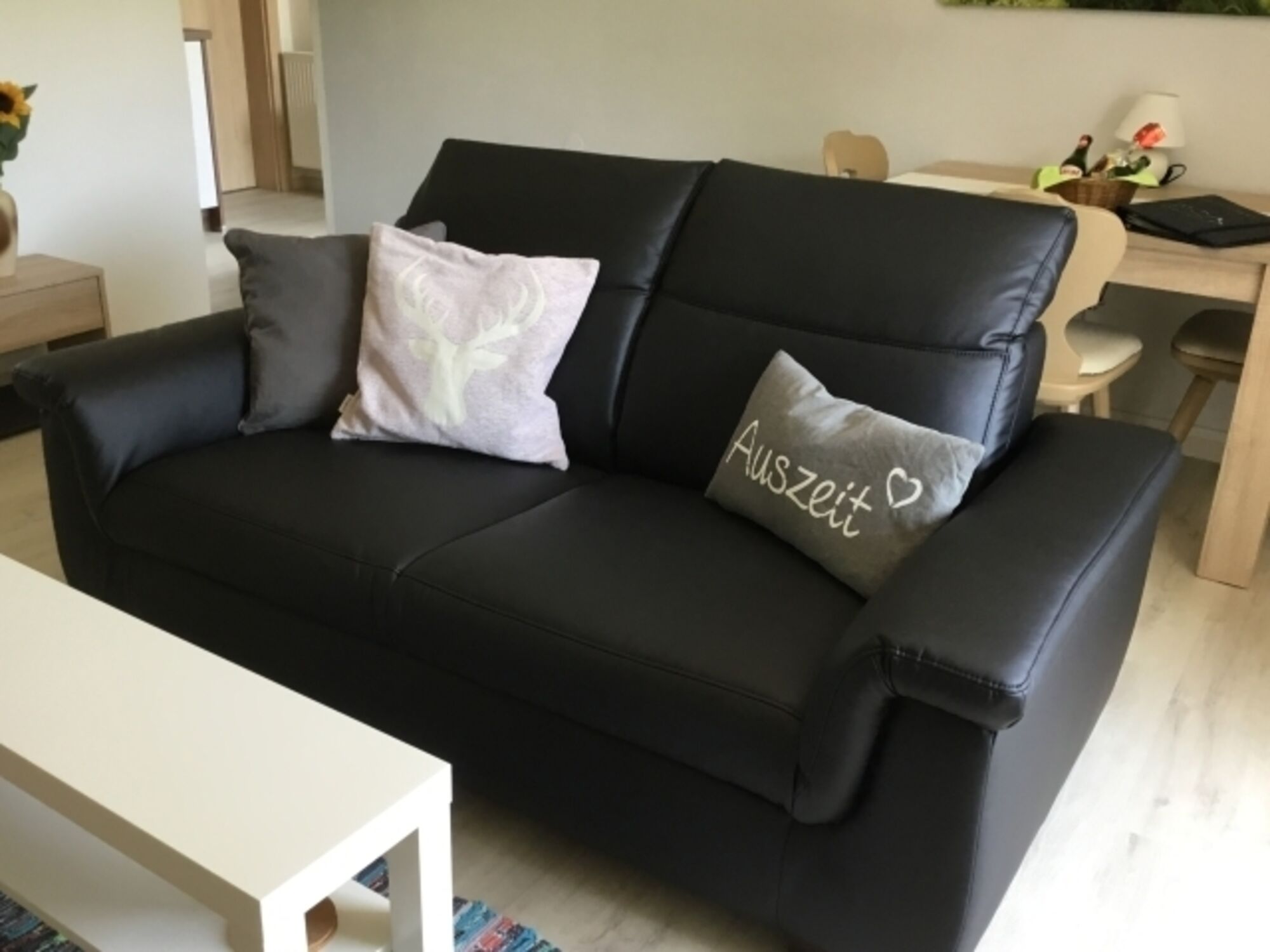 Modern und hell, ist unser ca. 46 qm großes hundefreundliche Apartment mit allem Notwendigen für einen schönen Urlaub für bis zu drei Personen ausgestattet. Im großzügigen Schlafzimmer ist dabei ausreichend Platz für ein vollwertiges Zustellbett. Der Balkon verläuft über zwei Seiten des Hauses, ist damit der Größte aller Apartments und bietet dadurch mehr Privatssphäre.