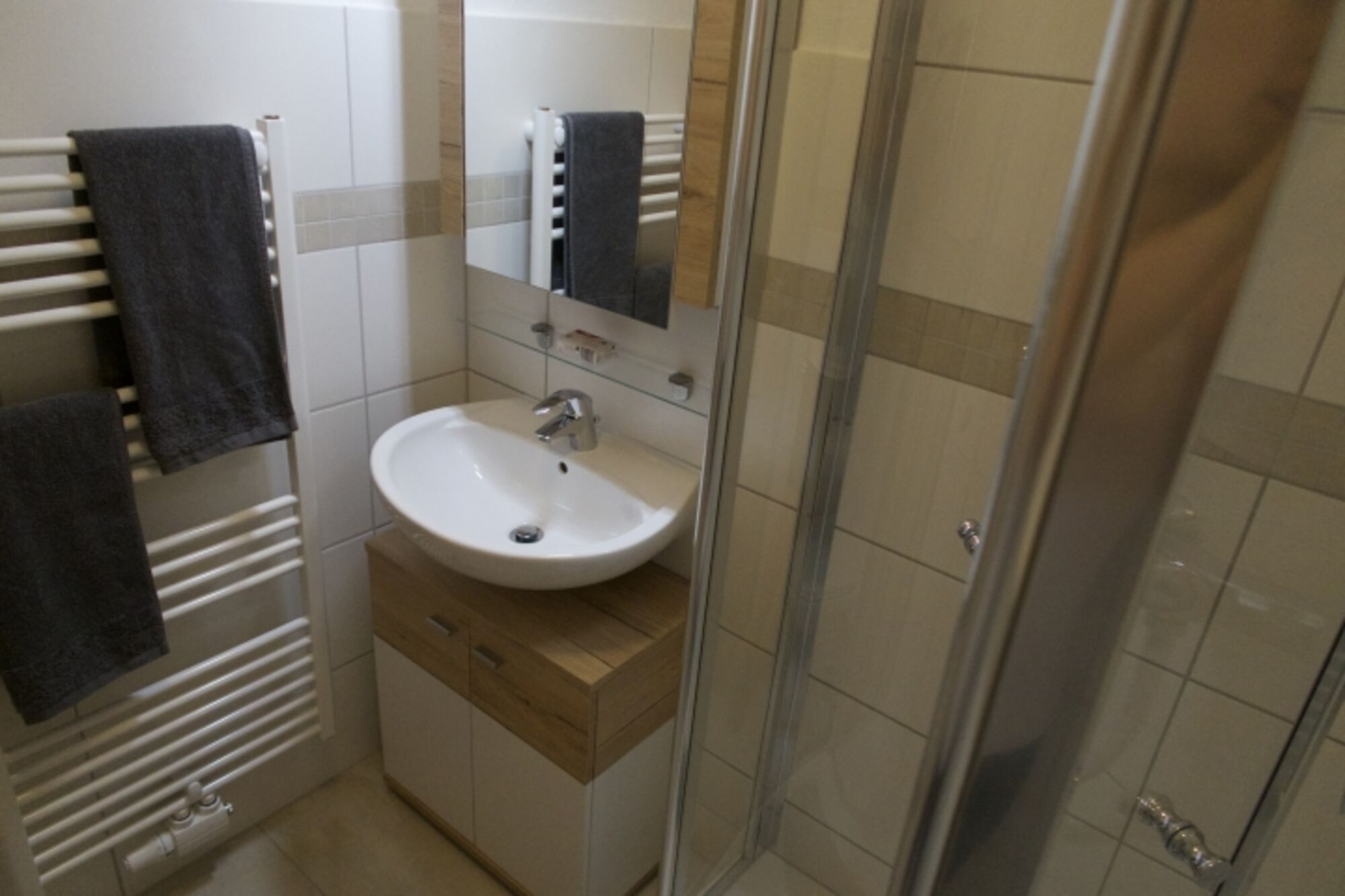 Waschbecken, Massagedusche, Spiegel