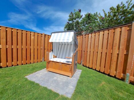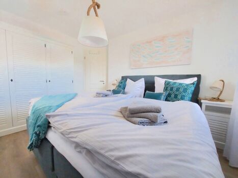 Eine offene, großzügig lichtdurchflutete Innenraumgestaltung mit bequemem, stimmig-stilvollem Interior in den beruhigenden Tönen Sand, weiß, taupe und türkisblau. Ein Traum für Familien und Individualisten, die Ruhe suchen, aber trotzdem auf nichts verzichten möchten und im Urlaub Wert auf eine klare Linie in punkto Design legen. Die großzügige Terrasse mit hochwertigen Möbeln und einem Strandkorb verspricht Momente voller Entspannung!