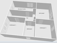 Das Haus gliedert sich auf 3 Zimmer in 85 m². Davon sind zwei Räume als Schlafzimmer ausgelegt.