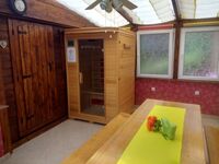Wer sich anders wärmen möchte, hat dazu im großen, hellen Wintergarten Gelegenheit. Hier steht eine Infrarot-Sauna und wartet auf unsere Gäste - die Nutzung ist selbstverständlich im Preis mit inbegriffen.