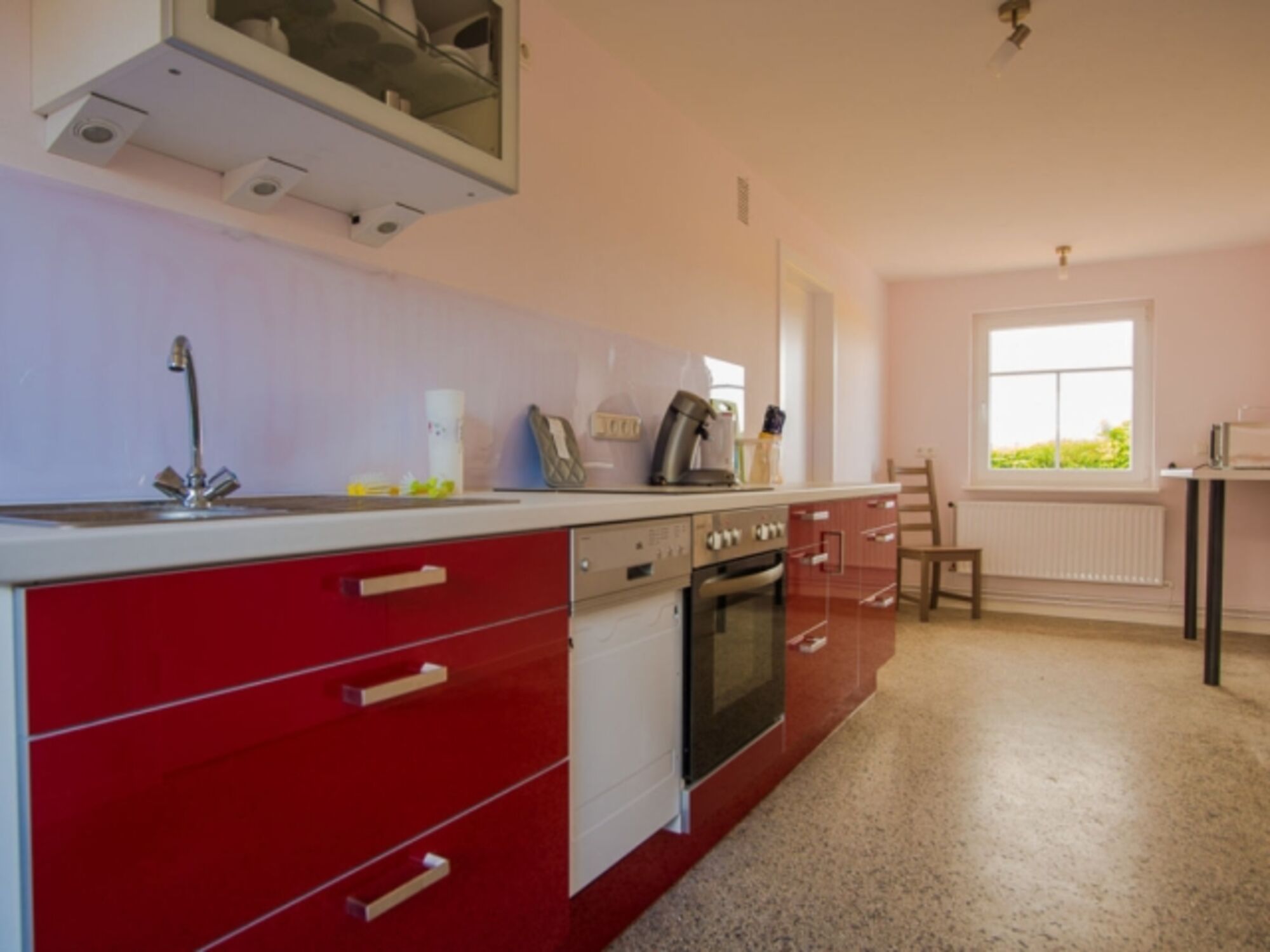 Cerankochfeld, Dunstabzugshaube, Kühlschrank mit Gefrierfach, Eierkocher, Küchenmaschine, Mixer, Korkenzieher / Flaschenöffner, Geschirrhandtücher, Essplatz in der Küche