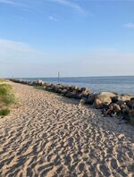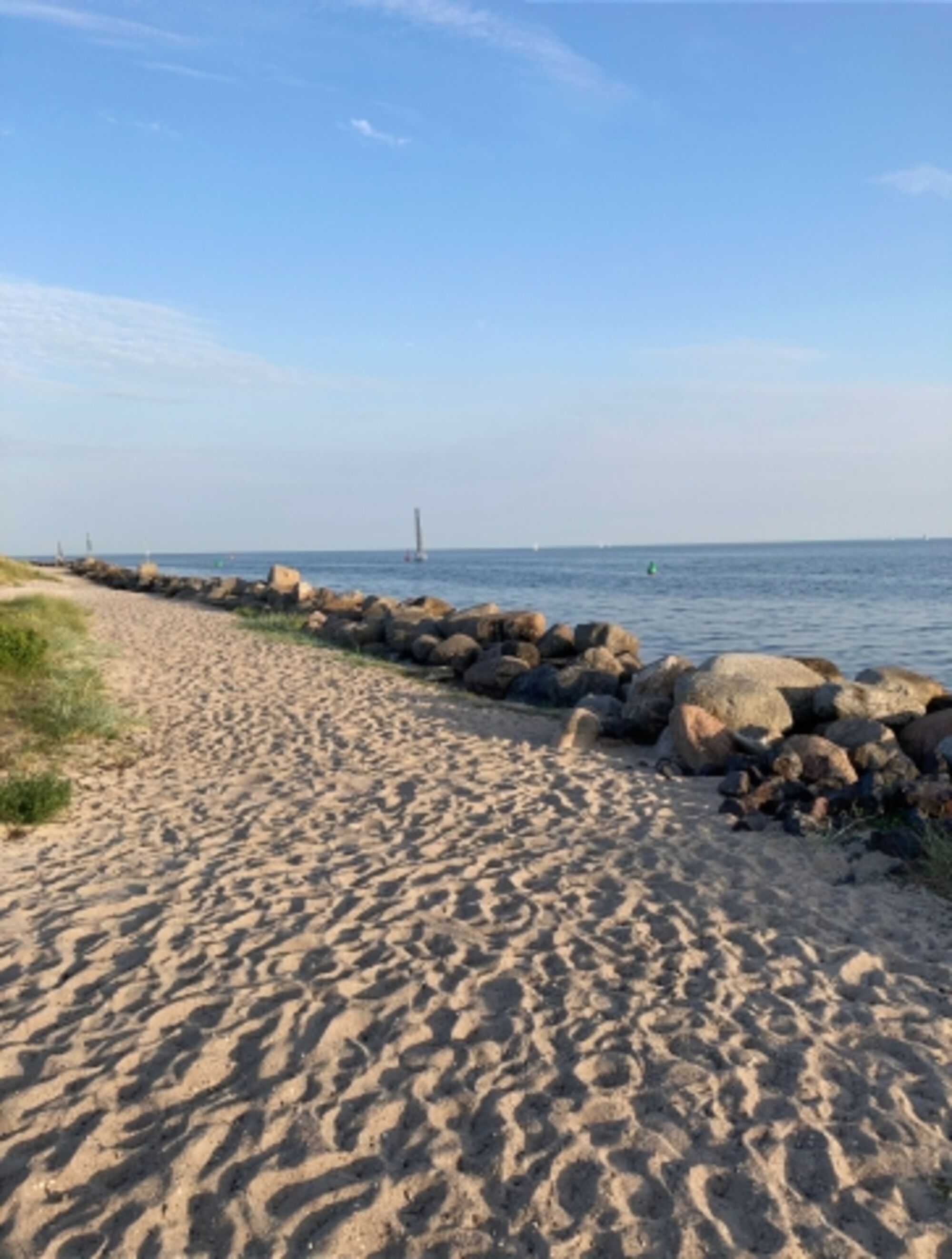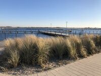 In wenigen Gehminuten erreichen Sie den feinsandigen Südstrand und mit seiner schönen Promenade (ca. 200 m). In unmittelbarer Umgebung befinden sich ein Bäcker sowie mehrere Cafés und Restaurants. Zahlreiche Möglichkeiten für Freizeitaktivitäten befinden sich ebenfalls in direkter Nachbarschaft (Radwege, Surf- und Kiteschule, Schwimmbad mit Sauna etc.).