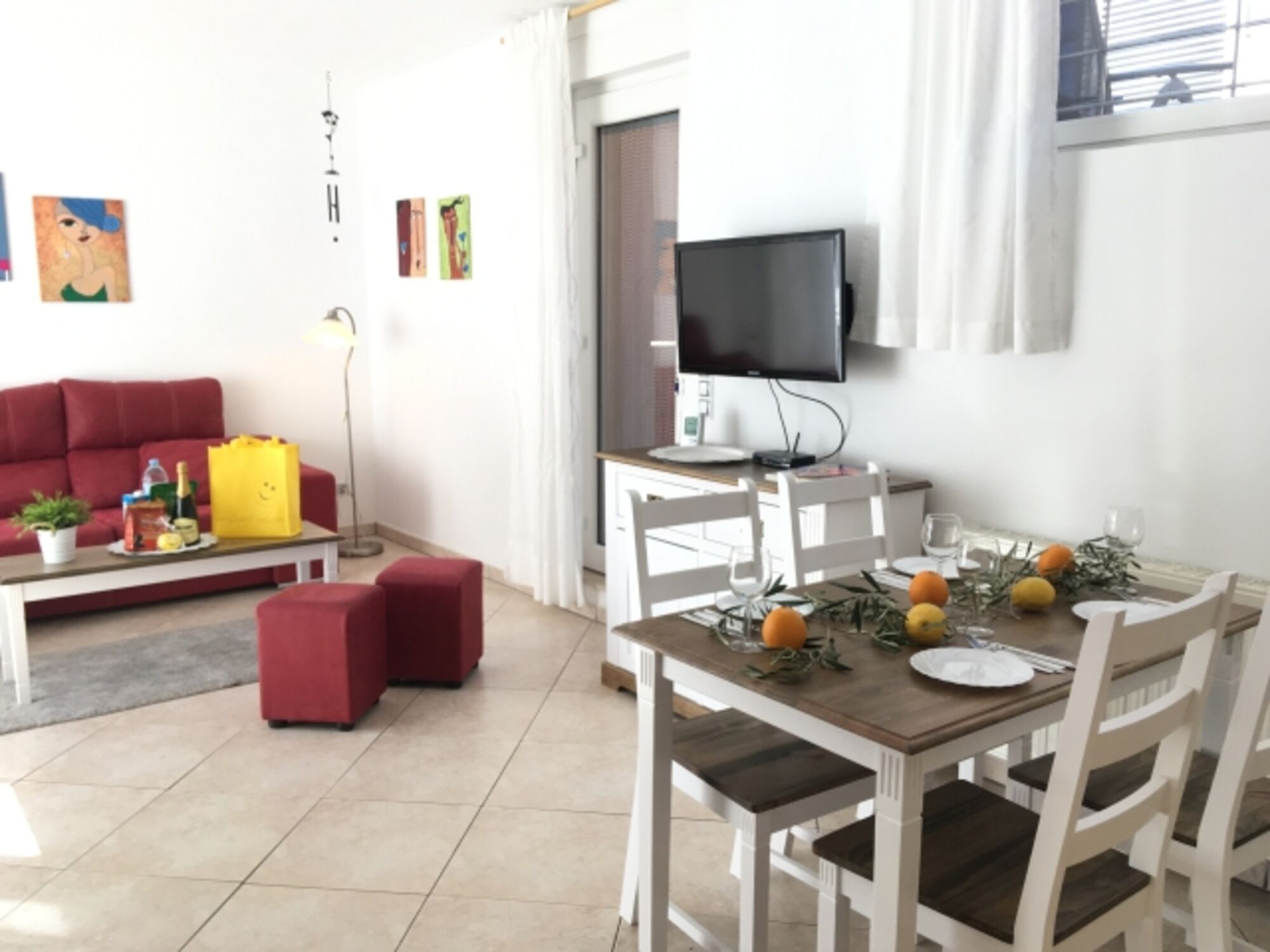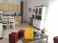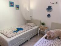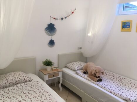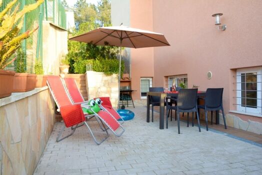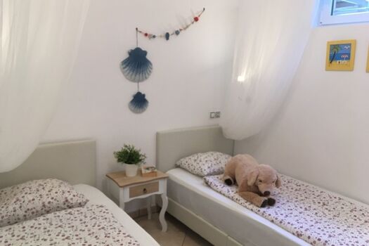 Freundliche Gästewohnung (Einliegerwohnung) im 2-Familienhaus, die Hauptwohnung wird von den Eigentümern bewohnt. Ein Schlafzimmer mit 150cm Doppelbett, das andere mit 2 Einzelbetten. Wohn-/Esszimmer mit Küchenzeile. Die Küche ist mit 2-Platten-Elektroherd, Mikrowelle, Senseo Kaffeemaschine und Kühl-/Gefrierkombination ausgestattet. Digitales deutsches Sat-TV, DVD. Schöne, zur Wohnung gehörende Terrasse mit gemauertem Grill, dessen Reinigung wir mit 35.- € in Rechnung stellen falls sie das nicht selbst übermöchten, von ca. 20 m². Die Poolterrasse mit Meerblick und der Pool werden auch von den Eigentümern genutzt. Kfz unbedingt erforderlich! Nicht für gehbehinderte Gäste geeignet !